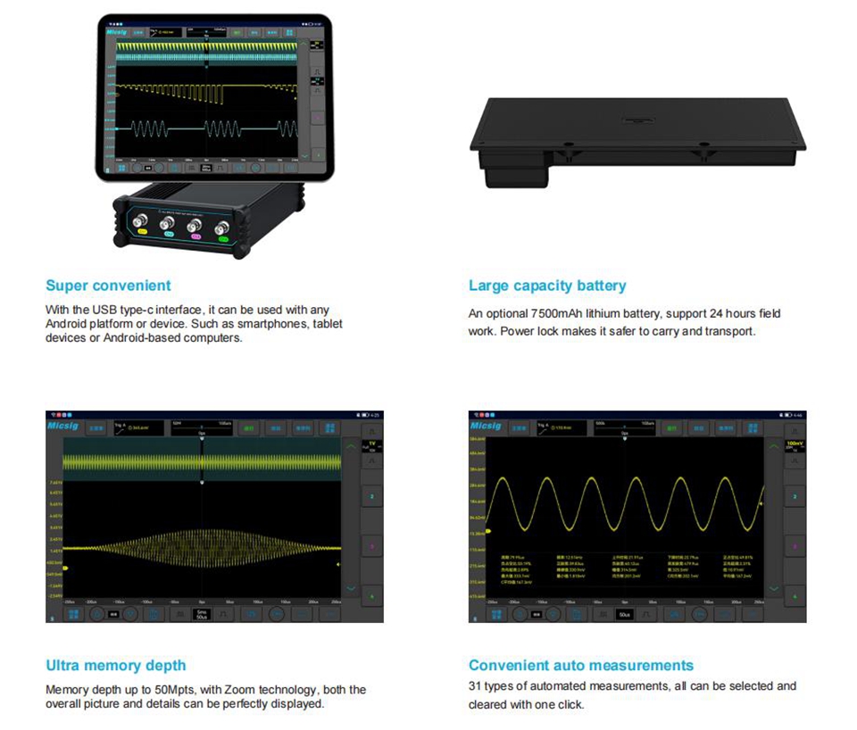 Micsig VATO2004 4-Channel Professional Portable 1GSa/s Automotive Oscilloscope for Vehicle Diagnose