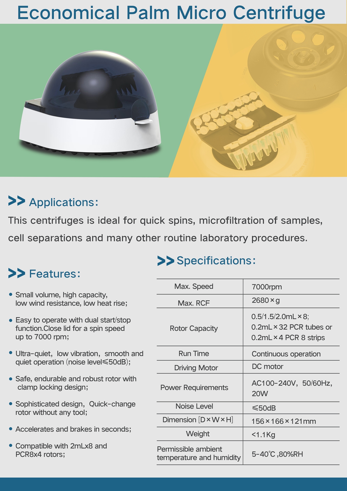 Mini-4K Economical Palm Micro Centrifuge High Capacity Centrifuge for Quick Spins and Cell Separations