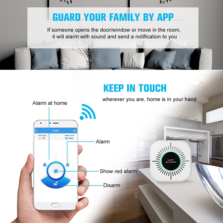 Mini GSM WiFi Alarm Wireless Home Security Alarm System Volume Recognition APP Control CS100-Wifi