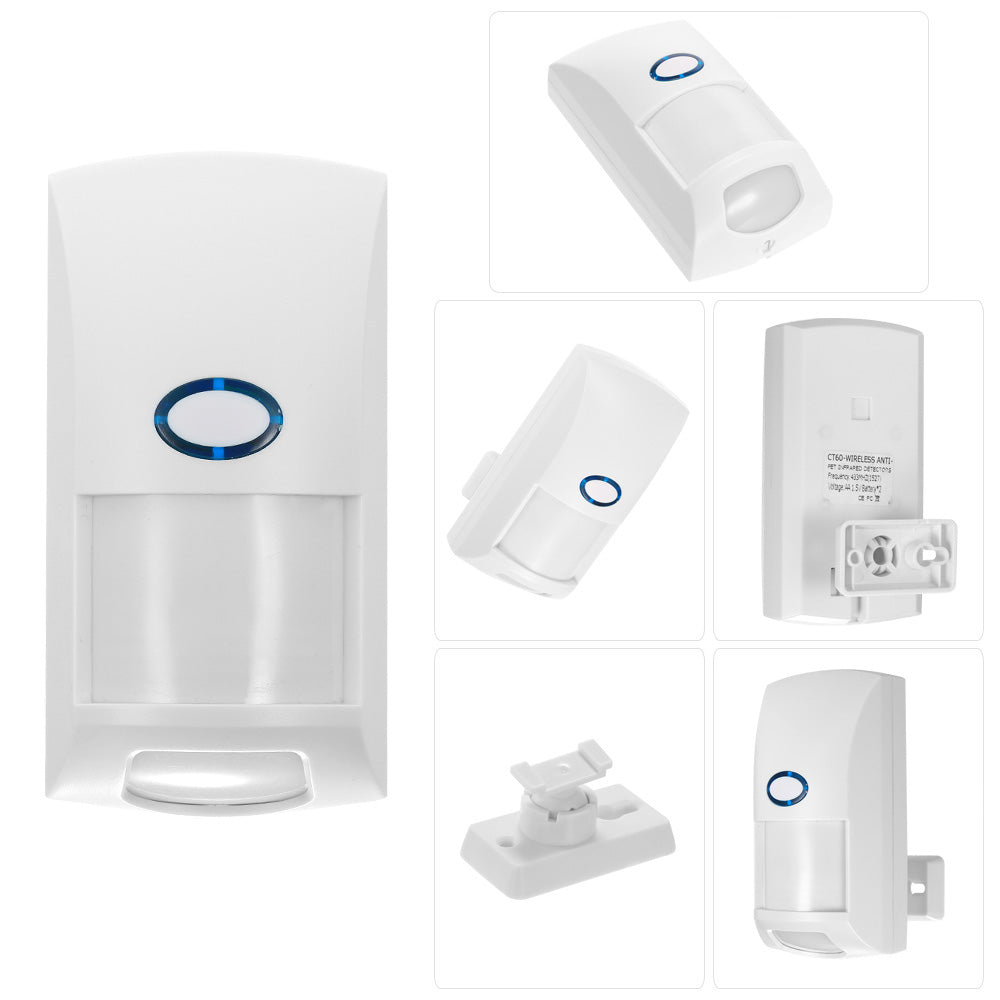 It is mainly for indoors uses. Adopted IR detection and smart volume recognition technology, it can reduces false alarms caused by your pets. It is matched with the wireless 433MHz signal from the main unit. When intruders are detected, it will send wireless 433MHz signal to the main unit which will report alarms to you immediately.