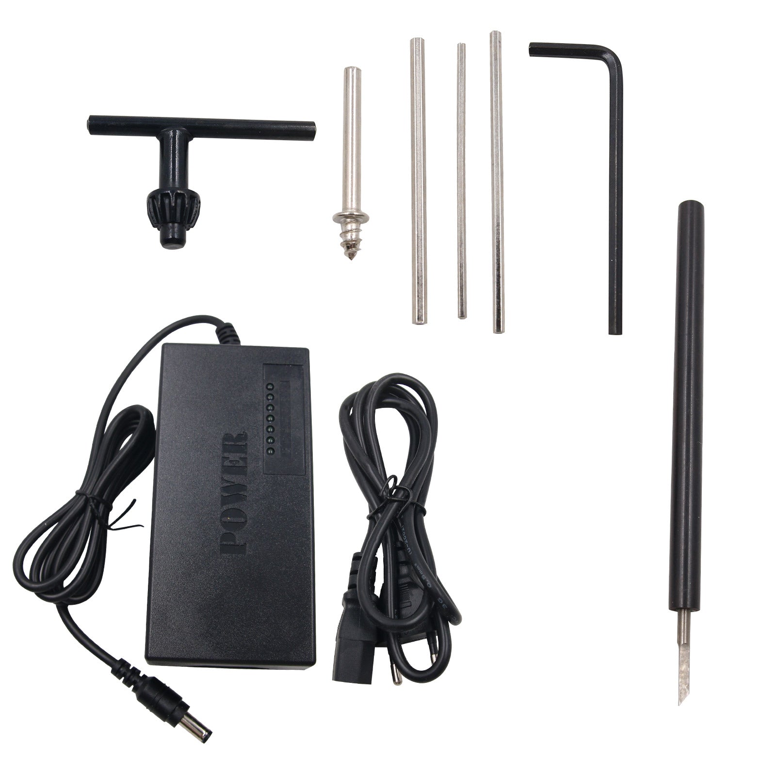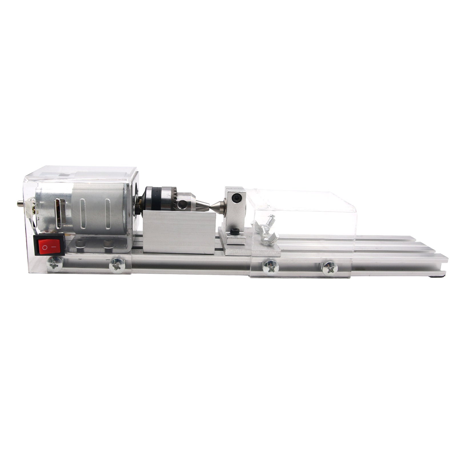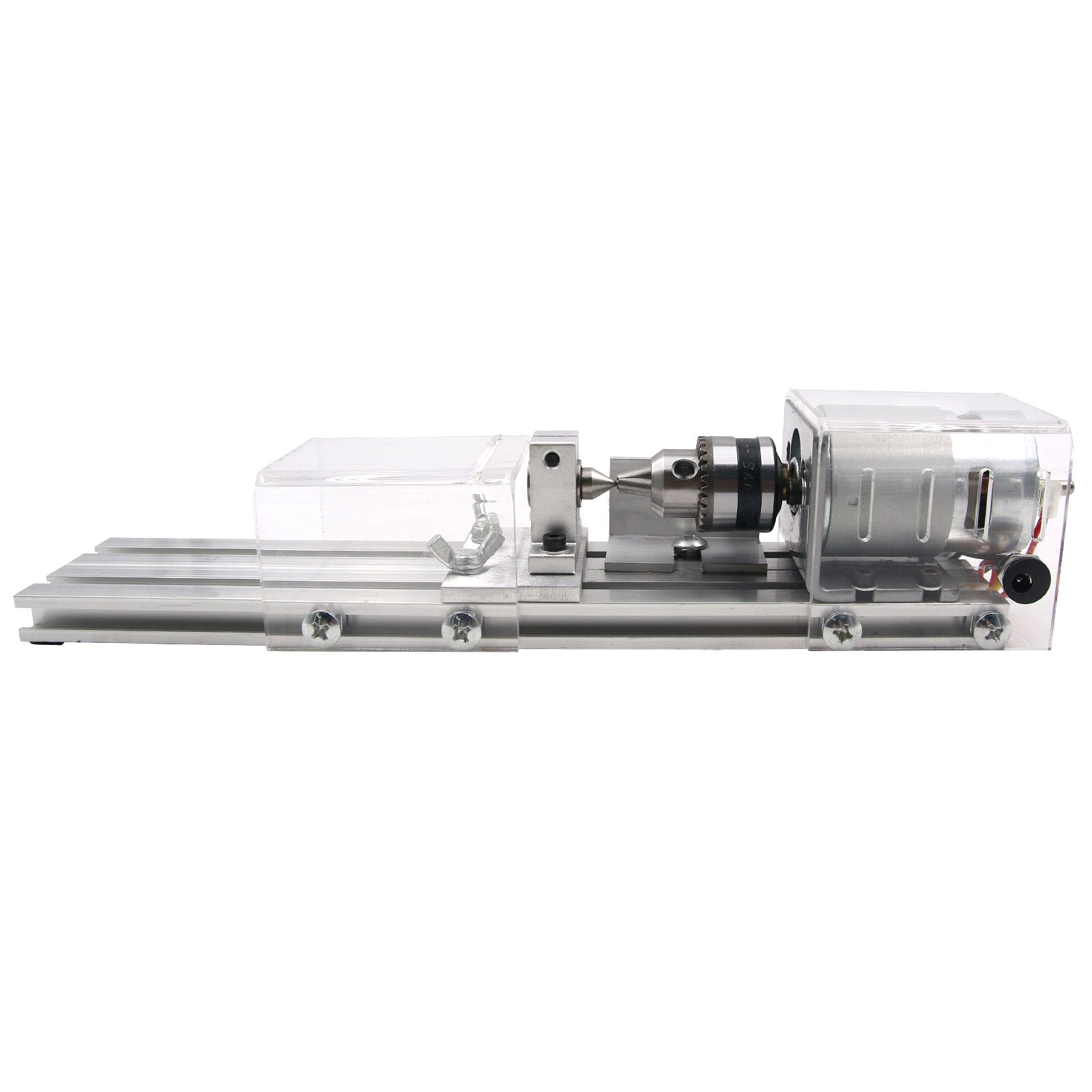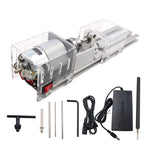 Mini Lathe Beads Machine Wood Working DIY Lathe Set with DC 24V Power Adapter Metal Cover