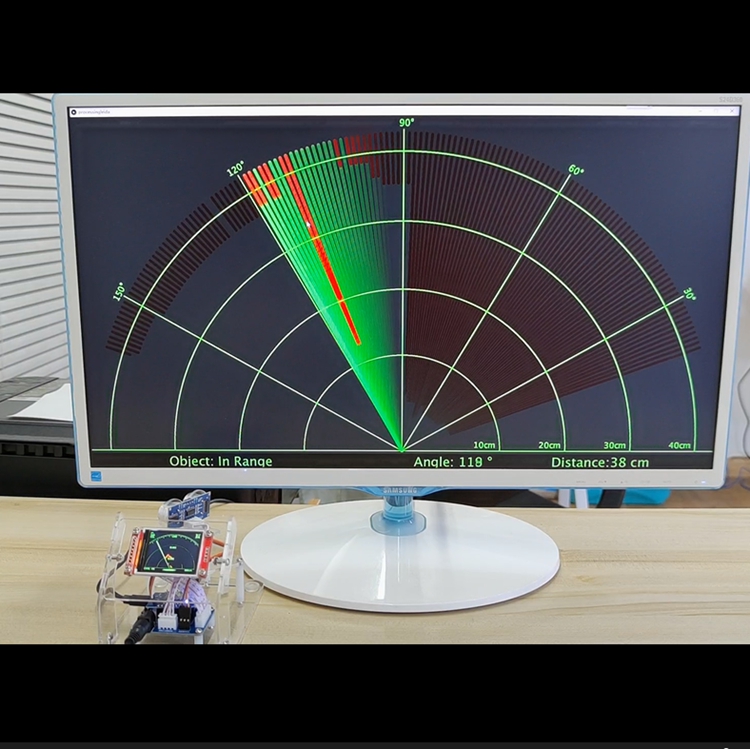 Mini Ultrasonic Radar Support Mini Screen and PC Display and 1M Motor Range for Arduino Starter Kit Programming Education