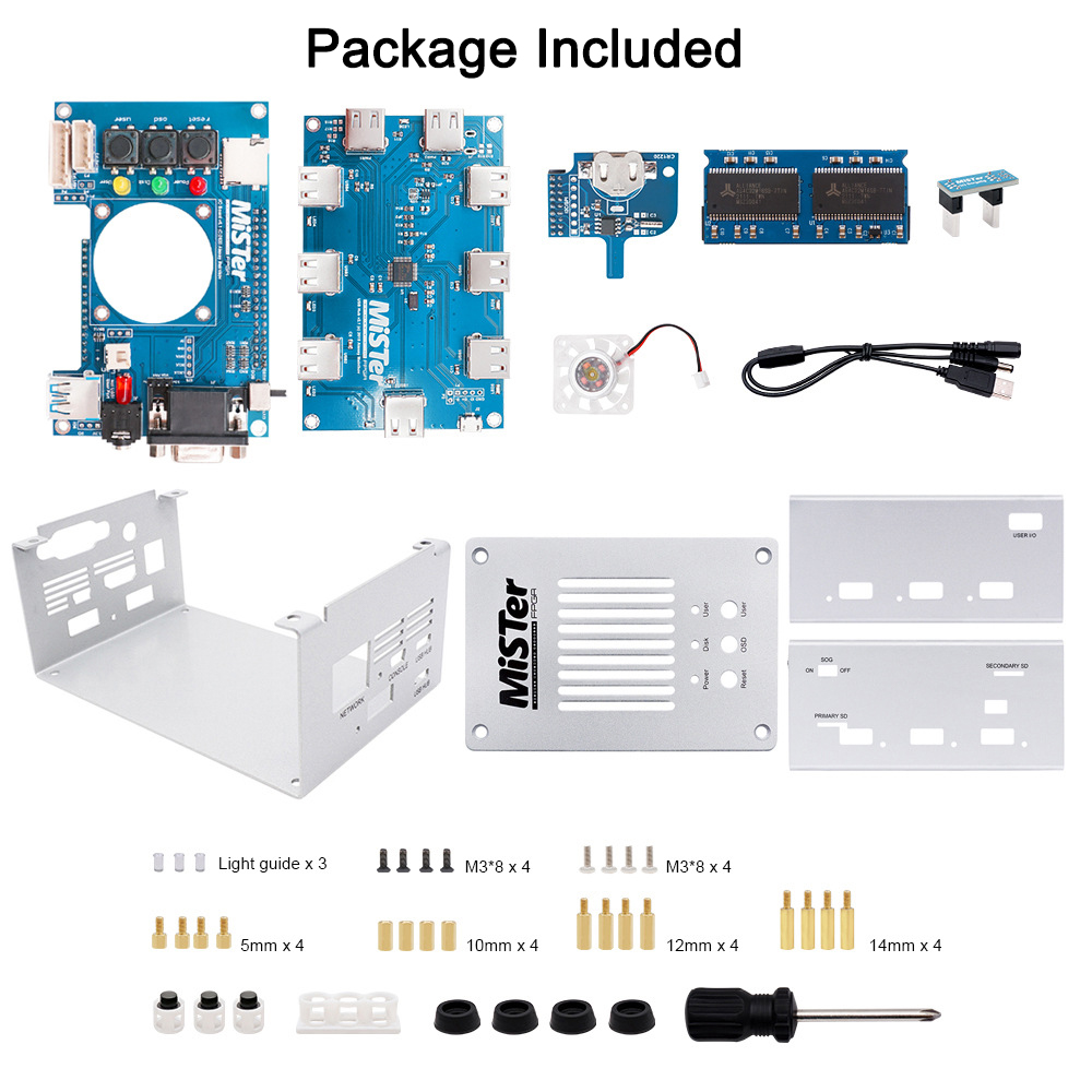 Mister FPGA IO Board Metal Shell w/ USB Hub RTC Board Fan (128MB V2.9 Silver) for Terasic DE10-Nano
