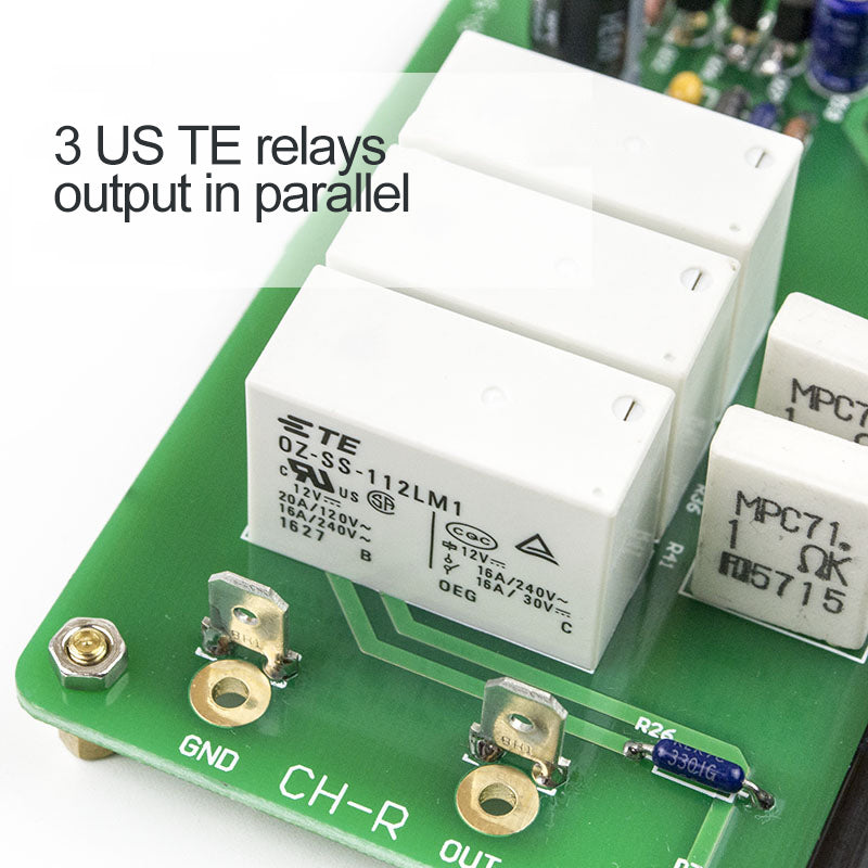 5. There is a complete protection circuit, with over-current, output short-circuit and DC protection functions, using original American TE Tyco high-quality relays. Using 3 high-current relays per channel can better over-current, but also effectively extend the life of the relay.
