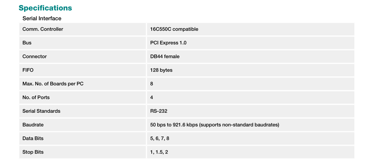 The CP-104EL-A is a smart, 4-port PCI Express board designed for POS and ATM applications. It is a top choice of industrial automation engineers and system integrators, and supports many different operating systems such as for Windows, Linux, and even UNIX. In addition, each of the board's 4 RS-232 serial ports supports a fast 921.6 kbps baud-rate. The CP-104EL-A provides full modem control signals to ensure compatibility with a wide range of serial peripherals, and its PCI Express x1 classification allows it to be installed in any PCI Express slot.