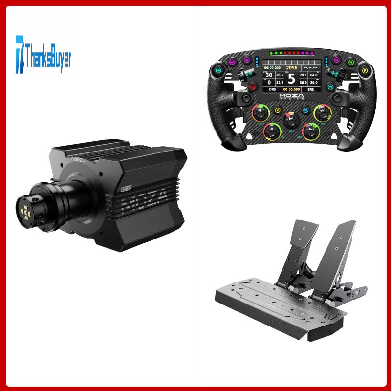 Experience the ultimate in racing simulation with our premium bundle, combining the powerful R12 Wheel Base, the luxurious FSR2 Formula Steering Wheel, and the versatile MOZA Universal Hub Kit. The R12 Wheel Base delivers an impressive 12 N·m of torque, a lightweight design, and precise force feedback—ensuring a dynamic and immersive racing experience. Crafted from aviation-grade aluminum, it offers exceptional durability and smooth operation, enhanced by intelligent temperature control and seamless mobile app integration. Pair it with the FSR2 Formula Wheel for lightning-fast gear shifts, real-time racing data on the 4.3-inch digital dash, and customizable RGB indicators. Maximize compatibility with the MOZA Universal Hub Kit, engineered to mount effortlessly onto a variety of third-party wheelbases for expanded versatility and control. Upgrade your racing setup with this all-in-one bundle, delivering unmatched performance, flexibility, and convenience for an unparalleled sim racing experience.