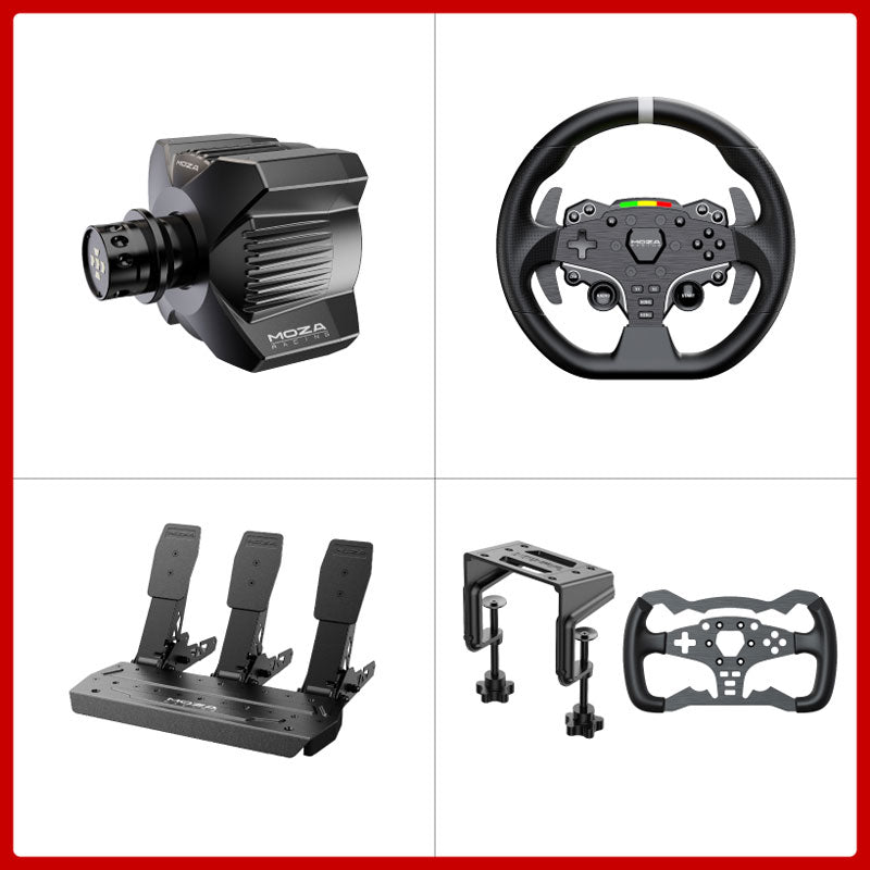 MOZA R3 Wheel Base + 11" ES Lite Steering Wheel + 3-Pedal SRP Lite + Table Clamp + Formula Wheel Mod for PC