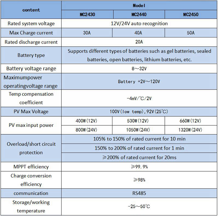 MPPT Solar Charge Controller 50A 660W/12V 1320W/24V MC2450 Infrared Communications