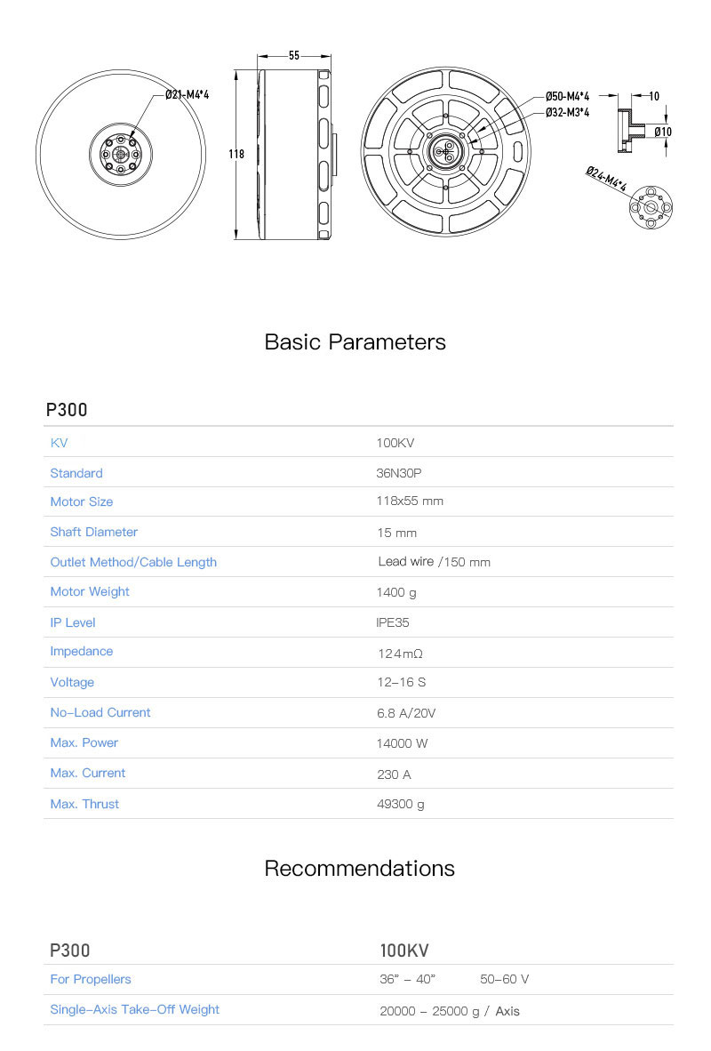 Multirotor Motor Brushless Motor For Drone TMU15L M30 Agricultural Drones Thrust 50KG 100KV