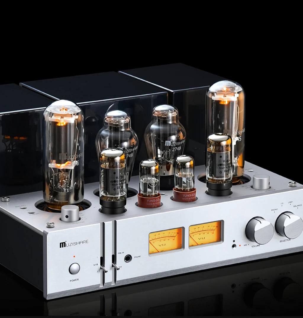 MUZISHARE X11 6L6 Push 845 Class A HiFi Vacuum Tube Power Amplifier 28W+28W MM PHONO Amplifier