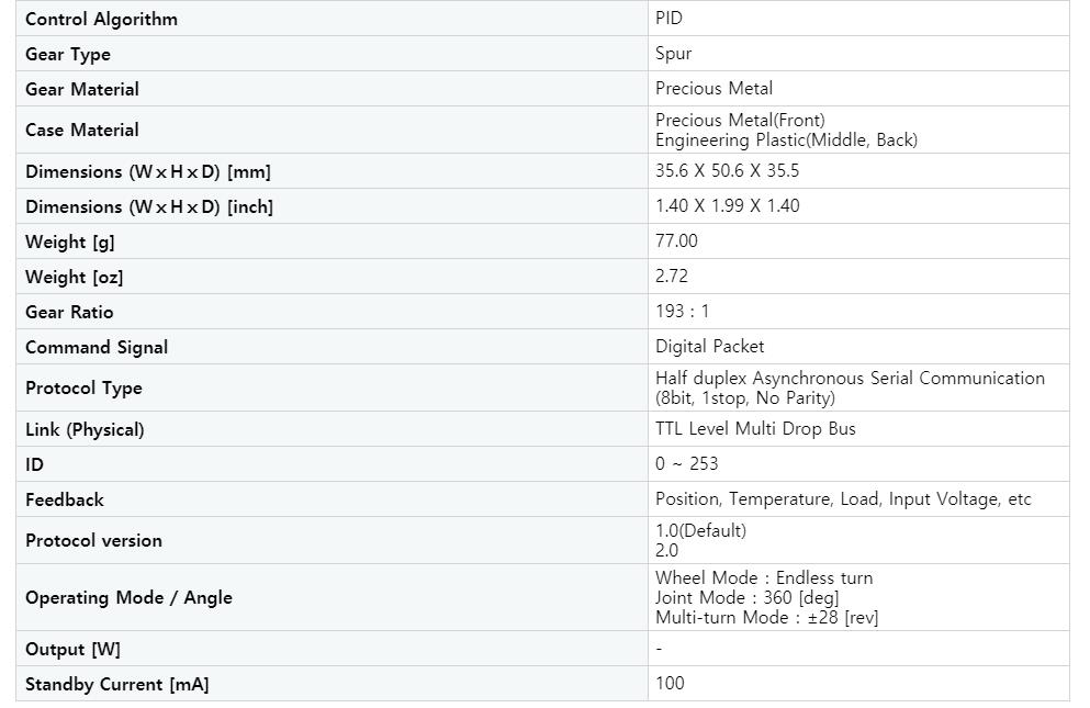 -Dynamixel series robot driver is a very popular modular driver, which is composed of a gear reducer, a precision DC motor and a circuit board with series function in a single package. Although it is small and compact, it can generate a lot of torque, and it is made of high-quality materials and has a certain strength, which can withstand certain external shocks. It has the function of detecting internal temperature, such as changing internal temperature and supply voltage.