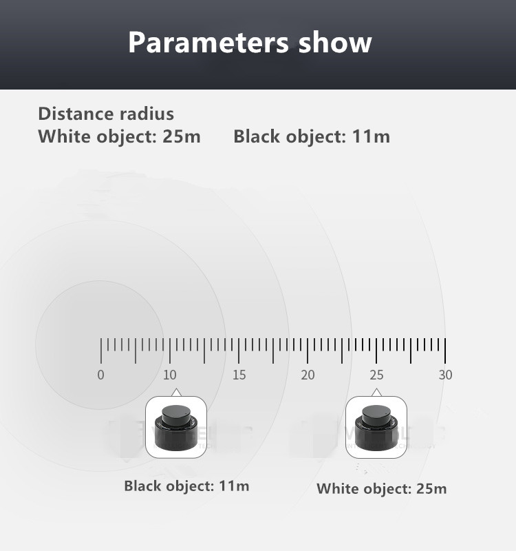 - Measuring Radius: White Object: 25m/82ft; Black Object: 11m/36.1ft
