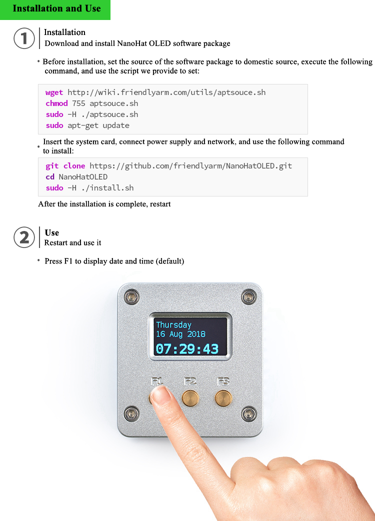 - NanoHat OLED: 0.96-inch resolution 128x64
