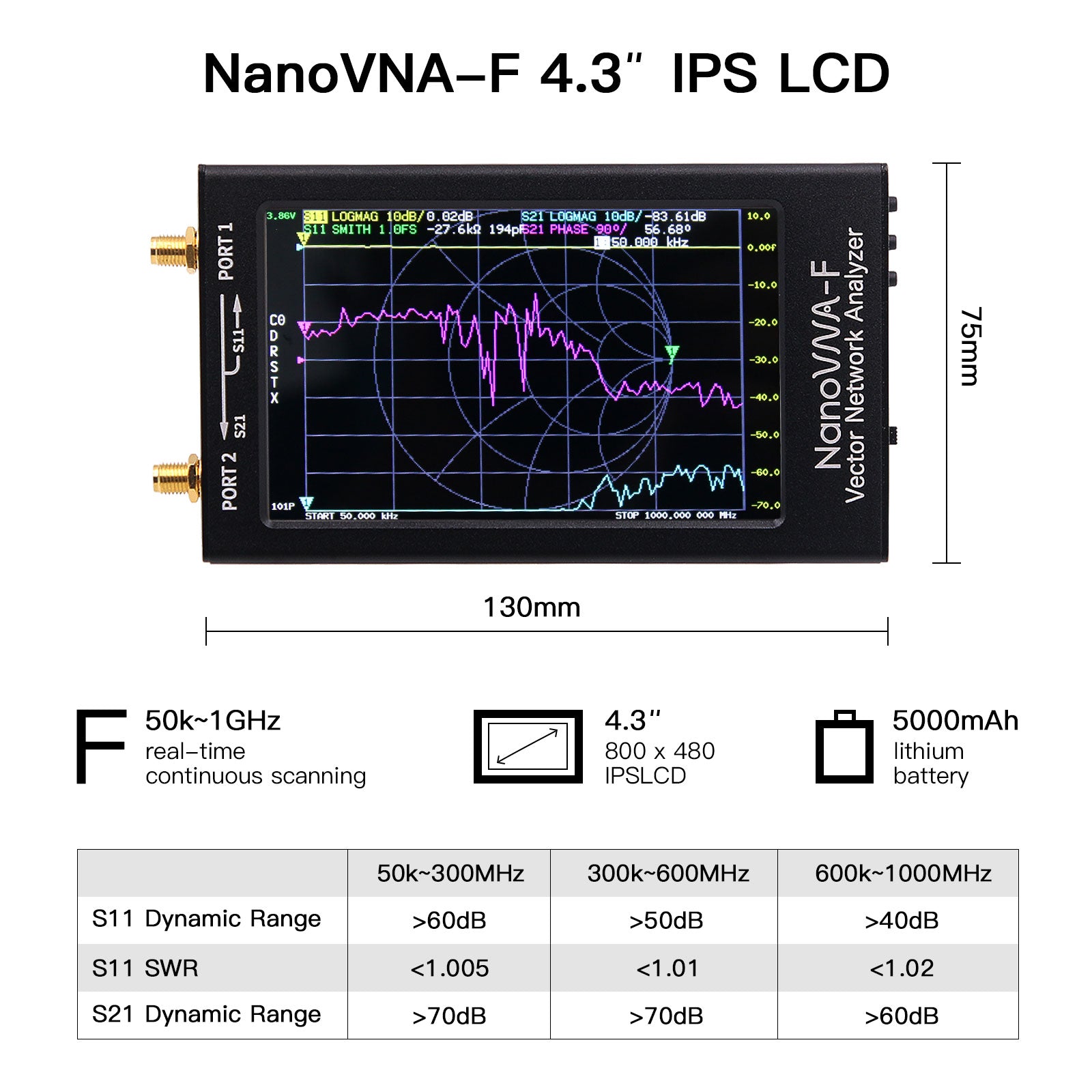 NanoVNA-F Vector Network Analyzer 10K-1500MHz 4.3" IPS Button Version Hardware V3.1 + RF Demo Kit