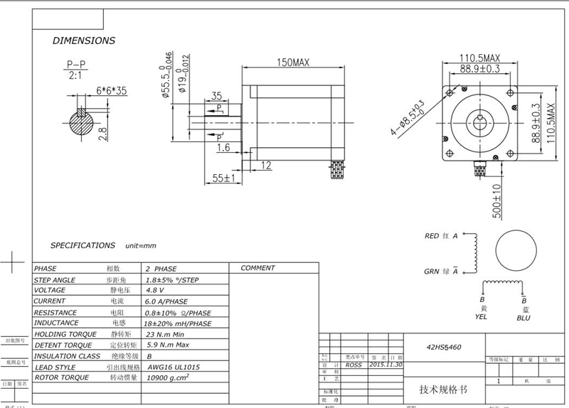 - 1 x Nema 42 stepper motor 3256 oz.in,5.6A, 4 leads, bipolar
