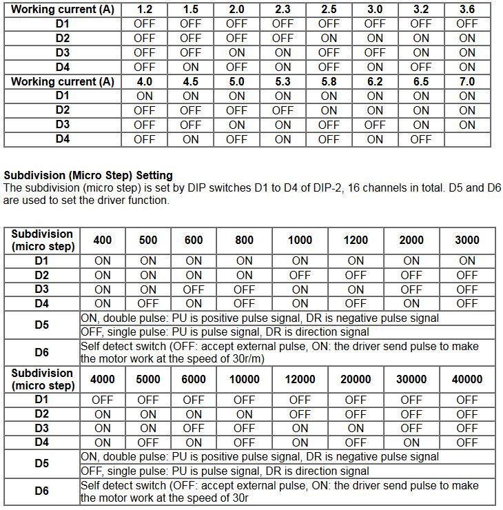 - 1 x Stepper motor driver DM2722A, peak 9.8A, 200 micsteps