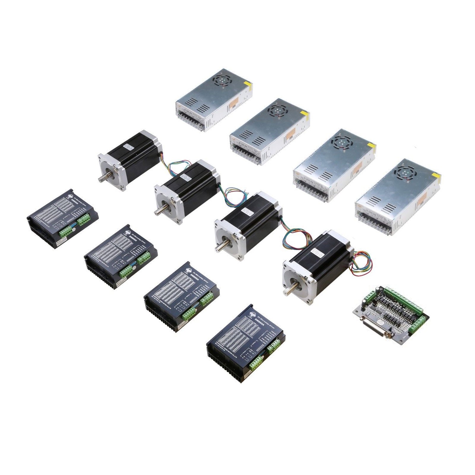 Nema34 Kit (4 34HS5435C-02B2 Stepper Motors+4 DM860A Drivers+4 350W-60V Power Supply+Breakout Board)
