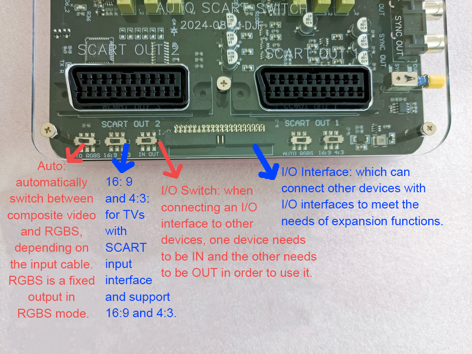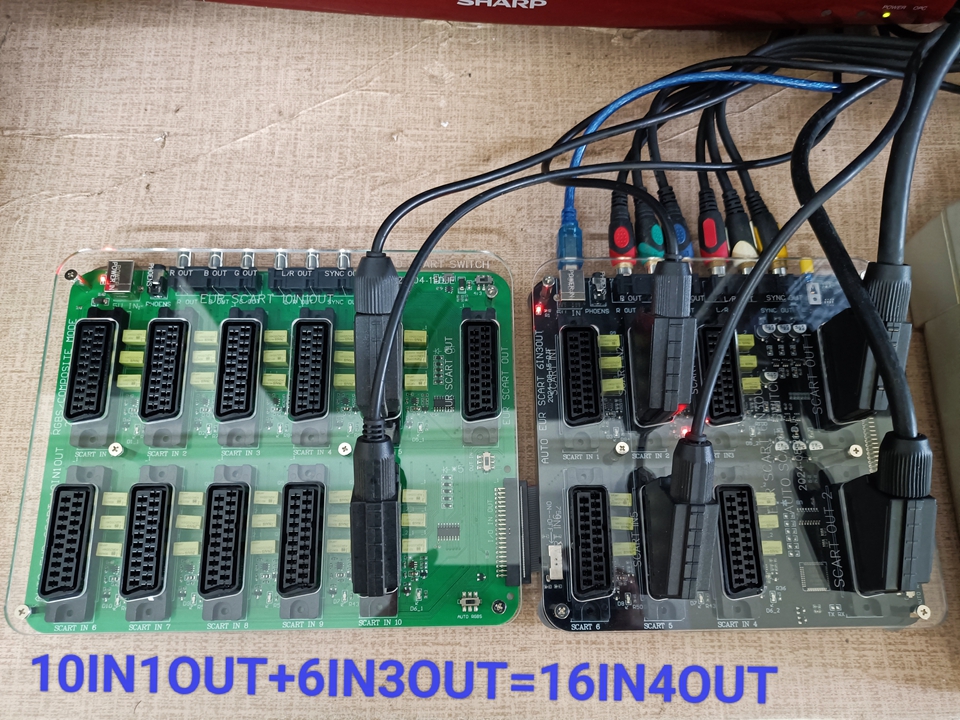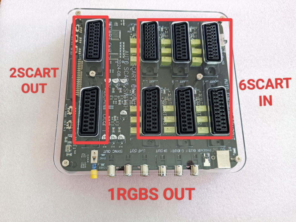 - It can input 6 sets of EUR SCART devices at the same time, 2 sets of EUR SCART outputs and 1 set of RGBS outputs (RGBS is generally connected to a monitor with RGBS input, and the monitor needs to be connected with a BNC to RCA connector, which cannot be used by ordinary TV), and 3.5 audio outputs are provided with headphone holes.