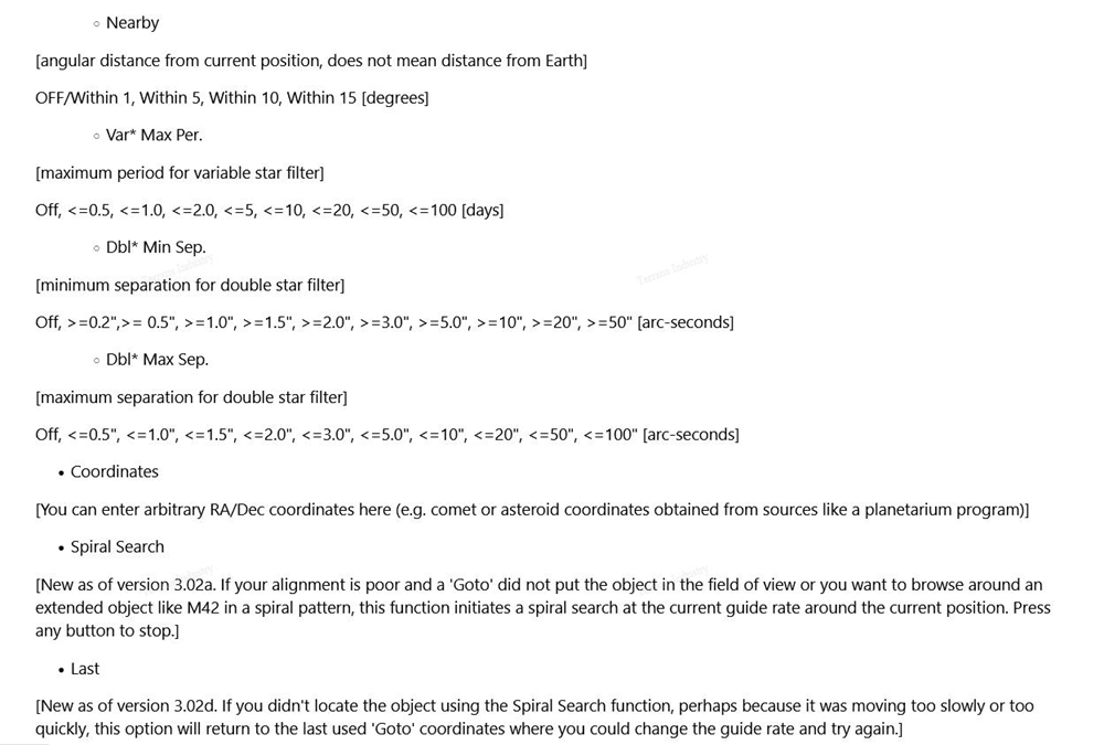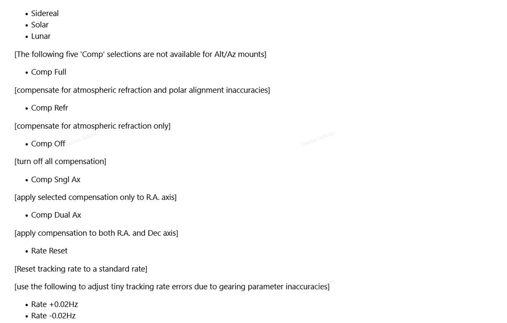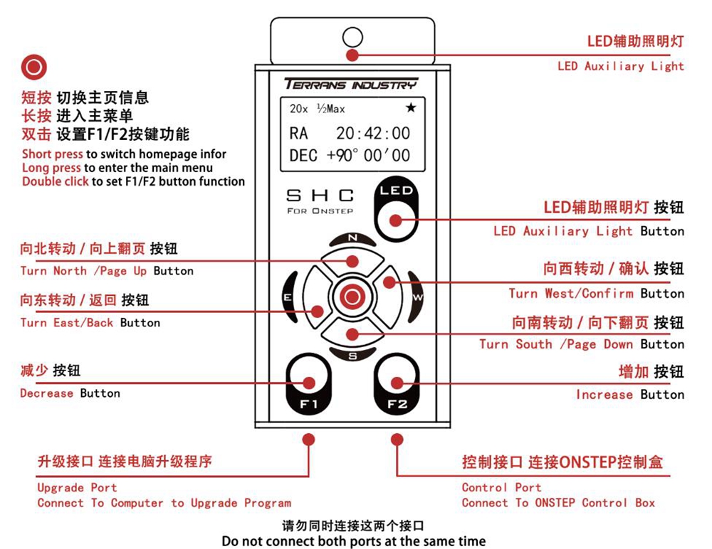 - F1/F2 buttons: F1 is for decrease, F2 is for increase, usually used to adjust manual control speed. Pressing F2 can increase the speed of the equatorial when using the directional keys.
