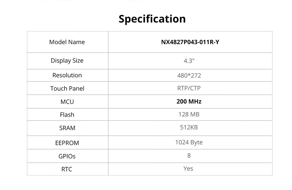 NX4827P043-011R-Y is a Nextion Intelligent series 4.3'' resistive HMI touchscreen with enclosure.