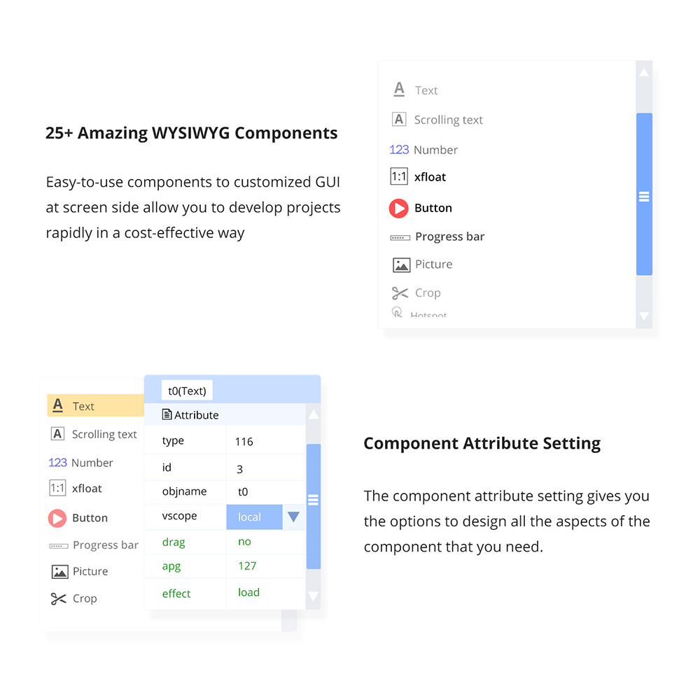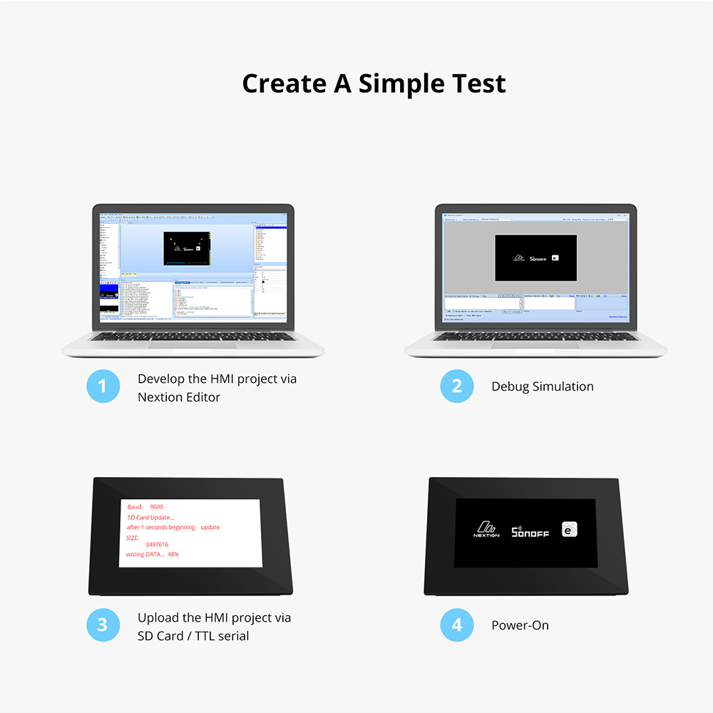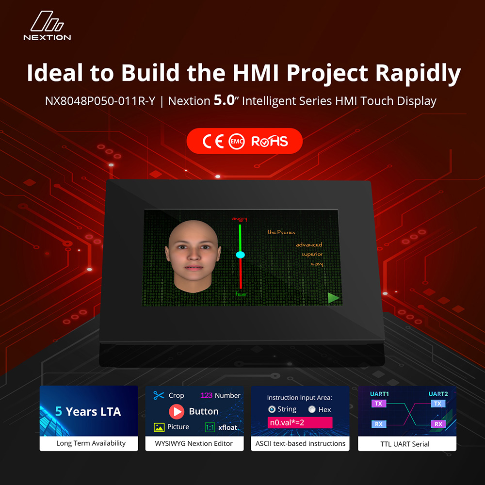 Nextion Editor is a free human-machine interface (HMI) GUI development software for Nextion Basic Series, Enhanced Series, and Intelligent Series. The software offers an easy way to create an intuitive and superb touch user interface even for beginners. Add a static picture as a background, define functions by components, you can make a simple GUI in minutes. The easy Drag-and-Drop components and simple ASCII text-based instructions will dramatically reduce your HMI project development workloads and develop projects rapidly in a cost-effective way. The Nextion product is the best balance HMI solution between cost and benefit with a low and decreased learning curve.