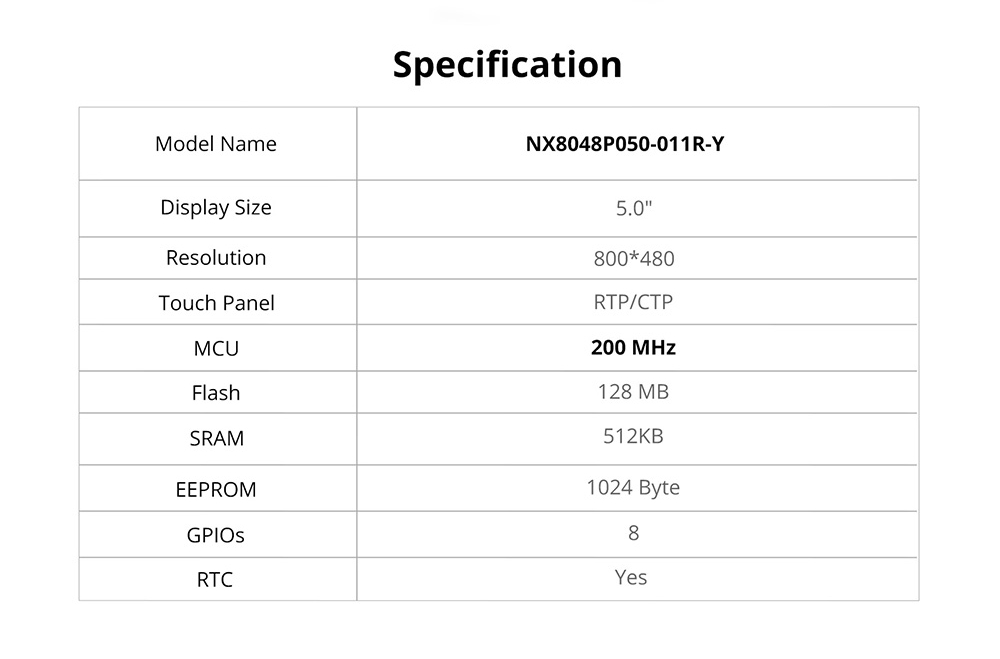 NX8048P050-011R-Y is a Nextion Intelligent series 5.0'' resistive HMI touchscreen with enclosure.
