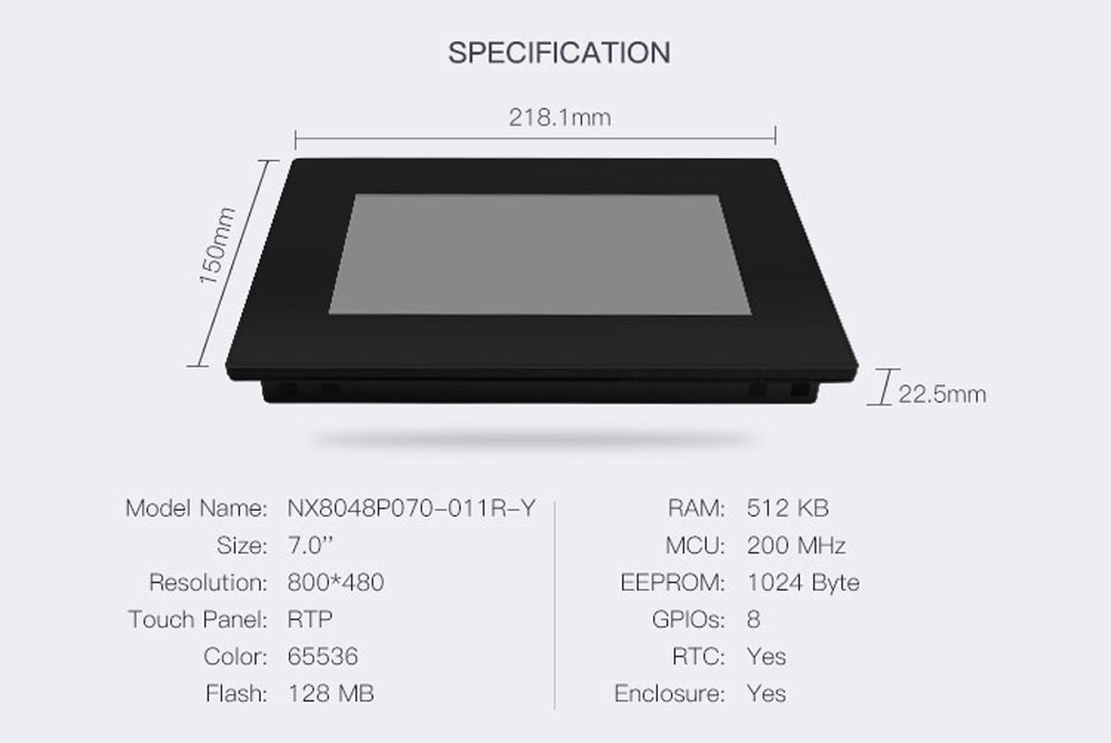 - NX8048P070-011R-Y (7.0'' IPS RGB 65K resistive touch screen)