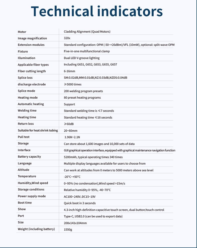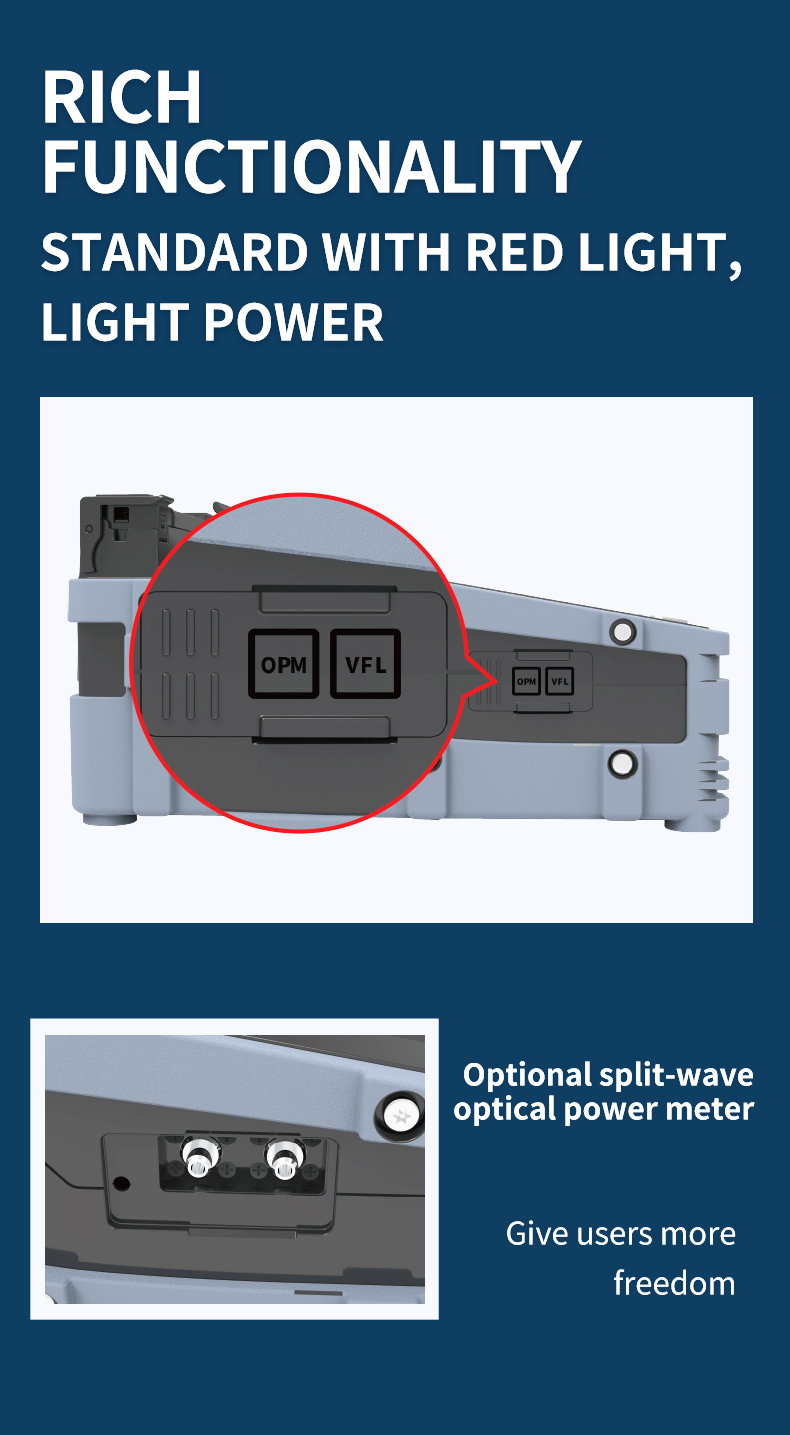 - Built-in expansion platform: Standard configuration: VFL, OPM, Bluetooth, split-wave power meter can be expanded.
