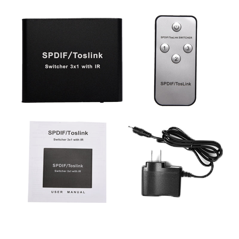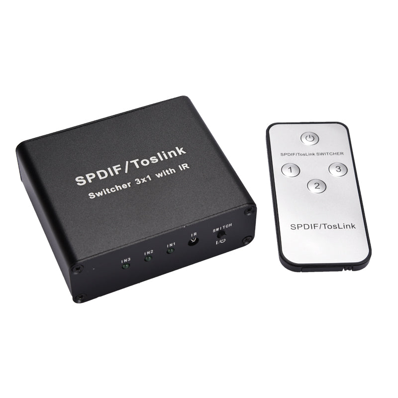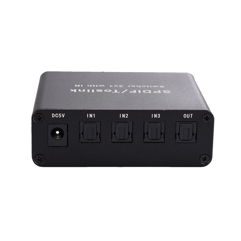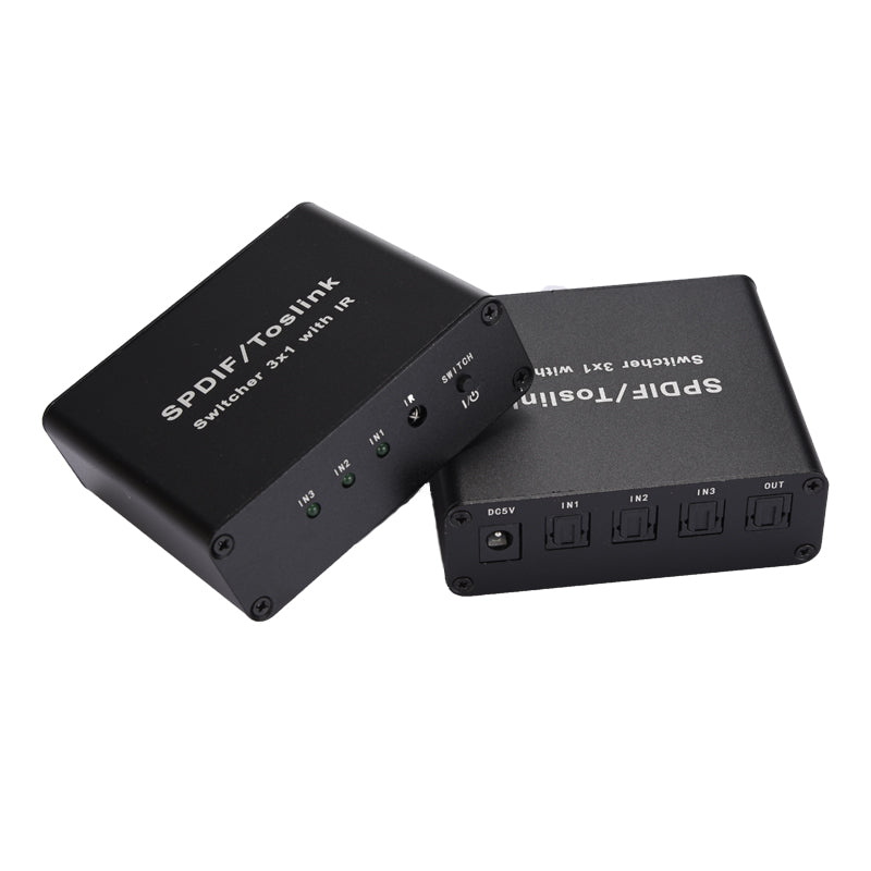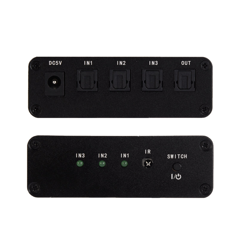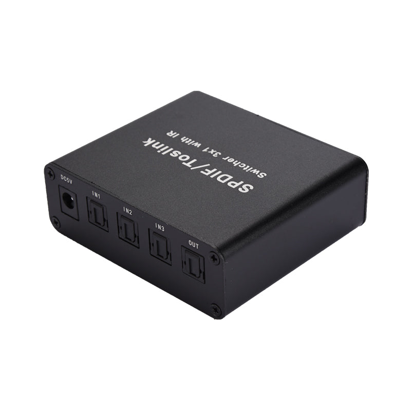 - Three ways of optical fiber signals switch to one sets of SPDIF/for TosLink signal receiving device