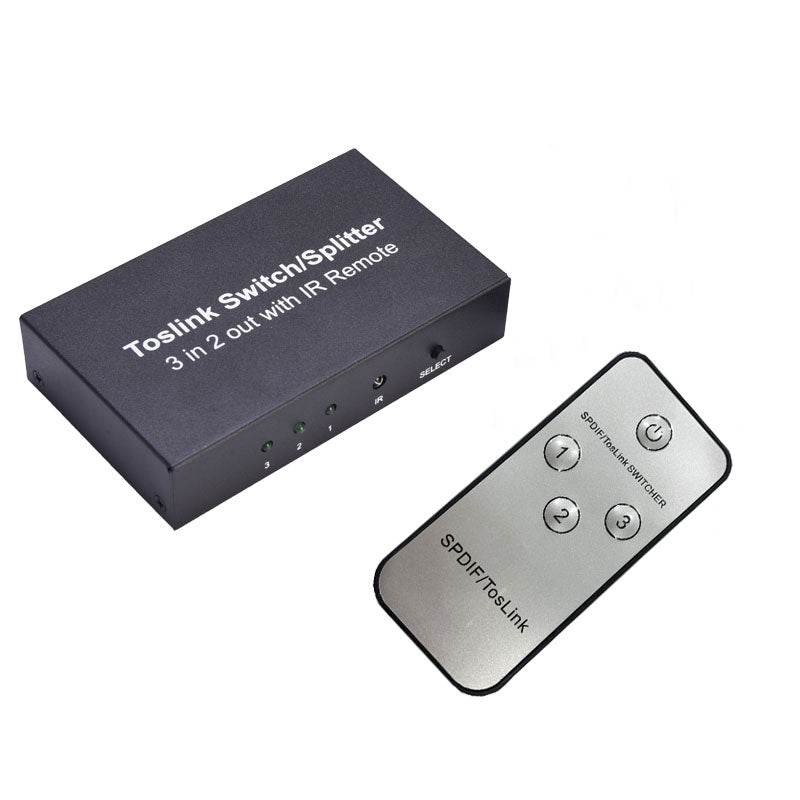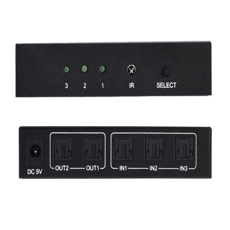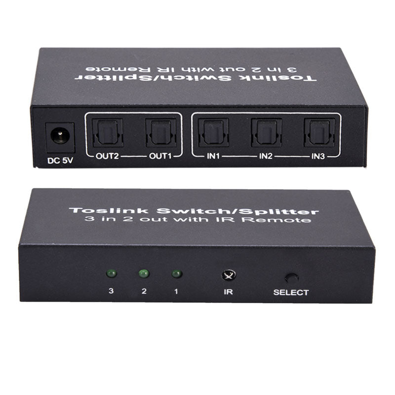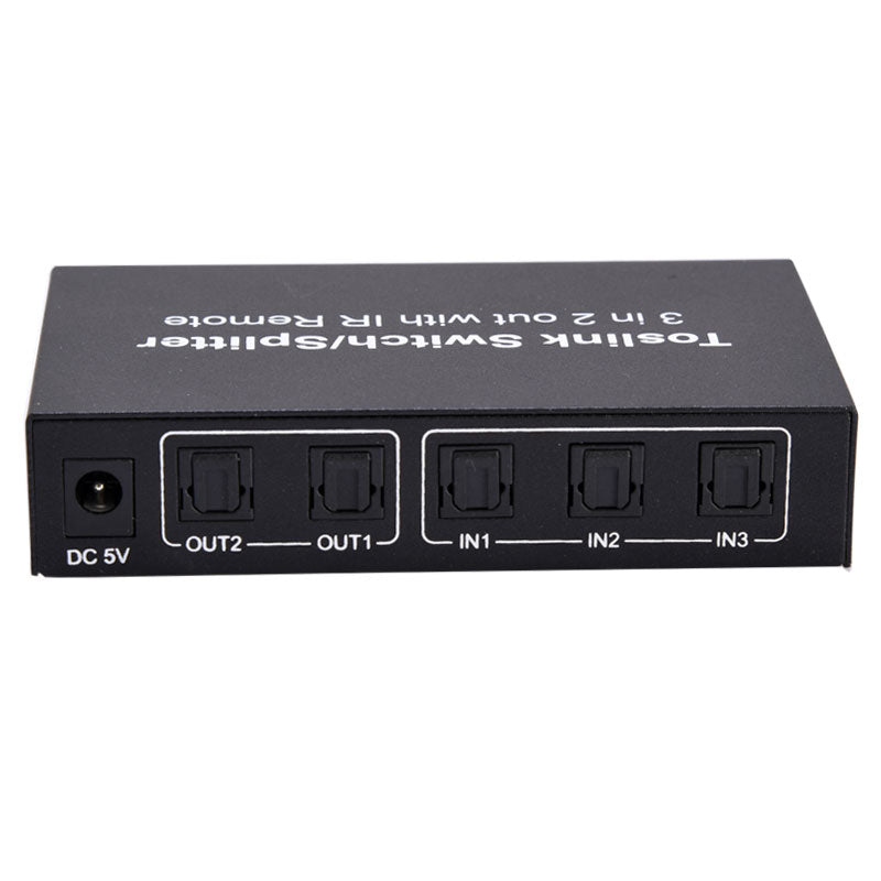 - Three way of optical fiber signals switch to two sets of SPDIF/for TosLink signal receiving device