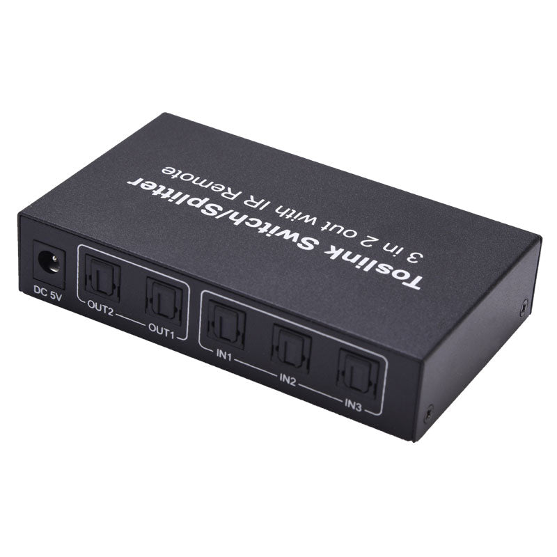This 3 in 2 out for TosLink digital optical audio switcher splitter can let the users to connect 3 digital optical for TosLink sources switch to 2 optical input for TosLink (SPDIF) on your sound bar, optical bluetooth transmitter at the same time.