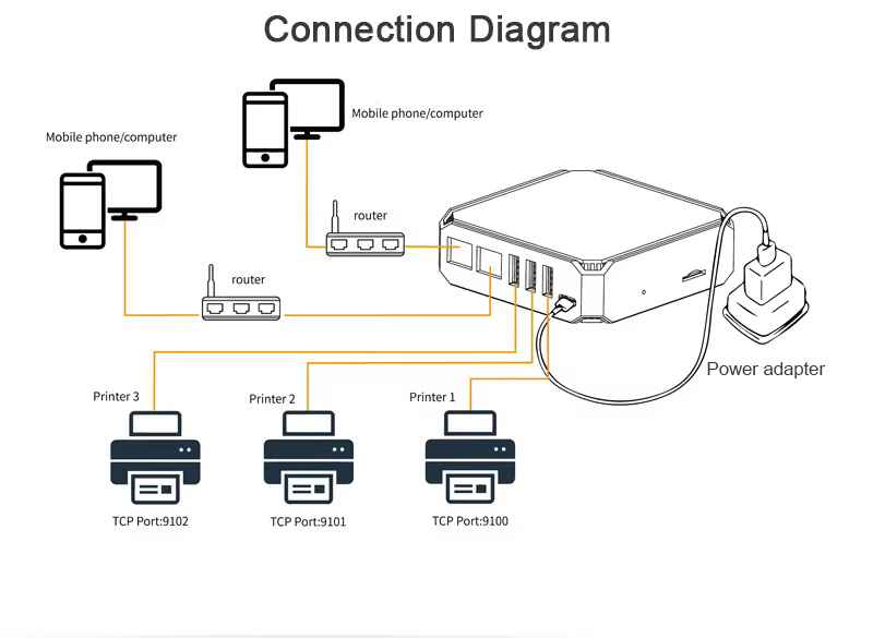 - 99% of printer models are supported: Inkjet printers, laser/barcode printers, dot matrix printers, thermal/label/receipt printers and multifunctional all-in-one printers can be used. Please consult customer service for more models.