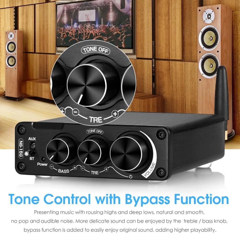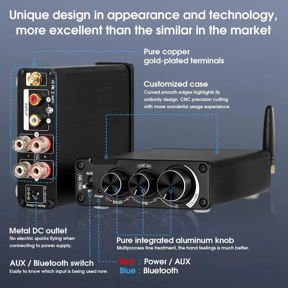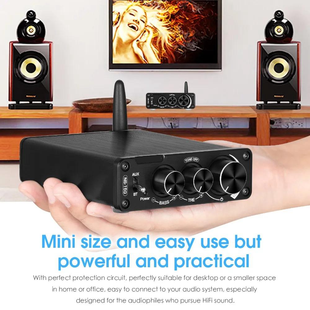 NS-15G Mini Bluetooth5.0 Digital Power Amplifier 100W+100W 2xTPA3116 HiFi Stereo Audio Amplifier with 24V6A Power Adapter