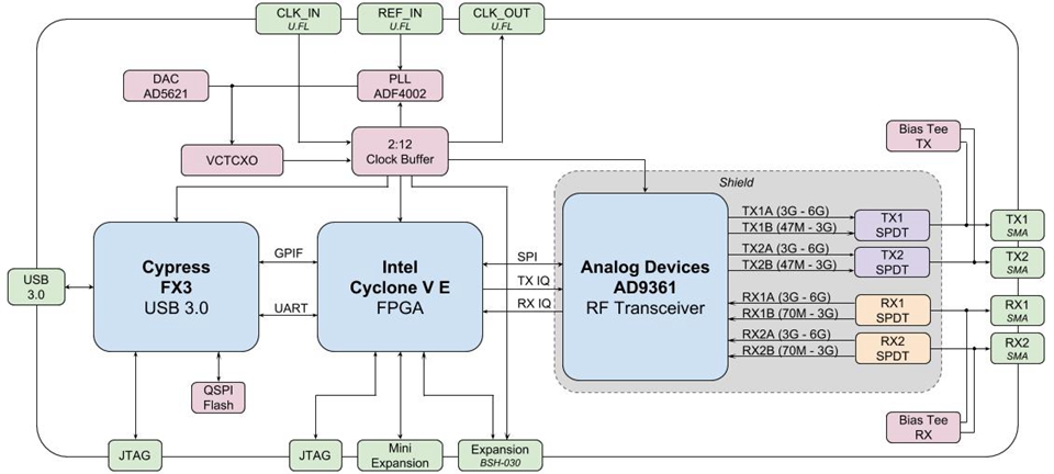 - All of the RF SMA ports are capable of providing power over bias-tee circuitry to wideband amplifiers and pre-amps. Power to bias-tee peripherals is fully software controllable, providing maximal operational flexibility. Currently, the official bias-tee peripherals include the BT-100, a wideband power amplifier for TX, and the BT-200, a wideband low noise amplifier for RX.