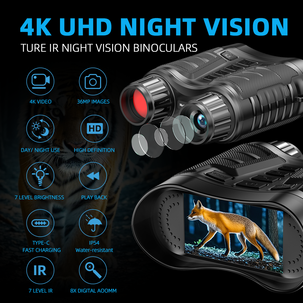 NV2181 Binocular 8X Digital Zoom Night Vision Device 4K 1080P IP54 Waterproof with 3.2-inch TFT HD Screen