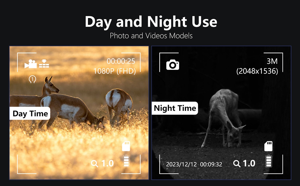 - 4 color effects: color, black and white, moonlight green, infrared light