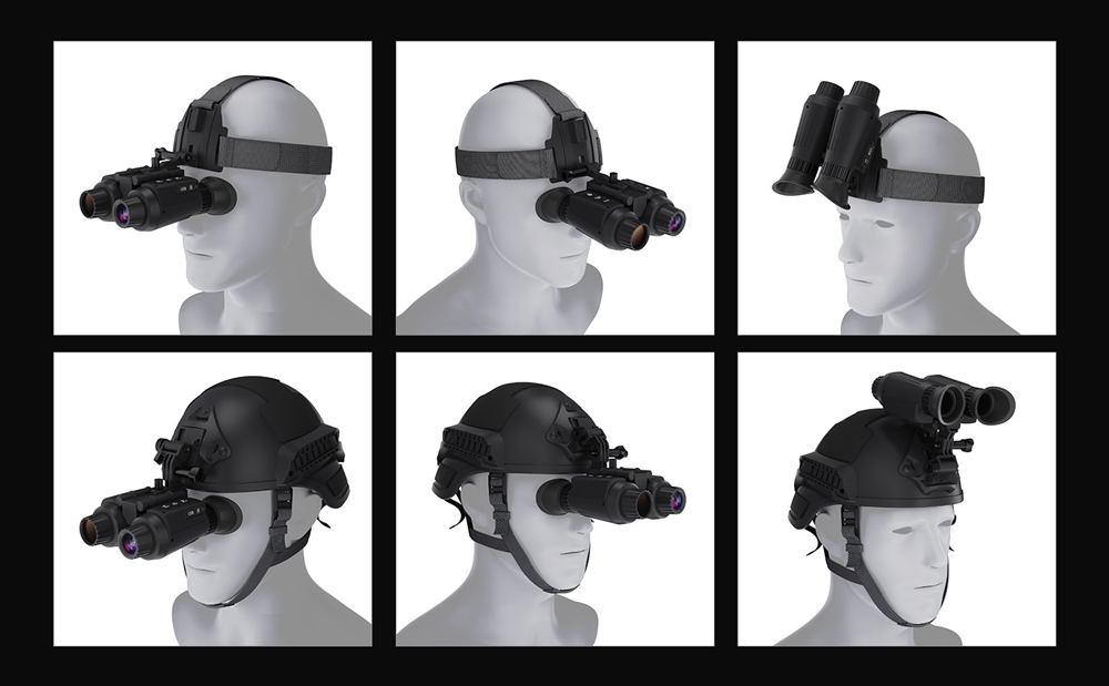 - The product is small in size, light in weight, and has multiple portable usage modes. It can be worn around the neck with straps, head-mounted with straps and tactical helmets.