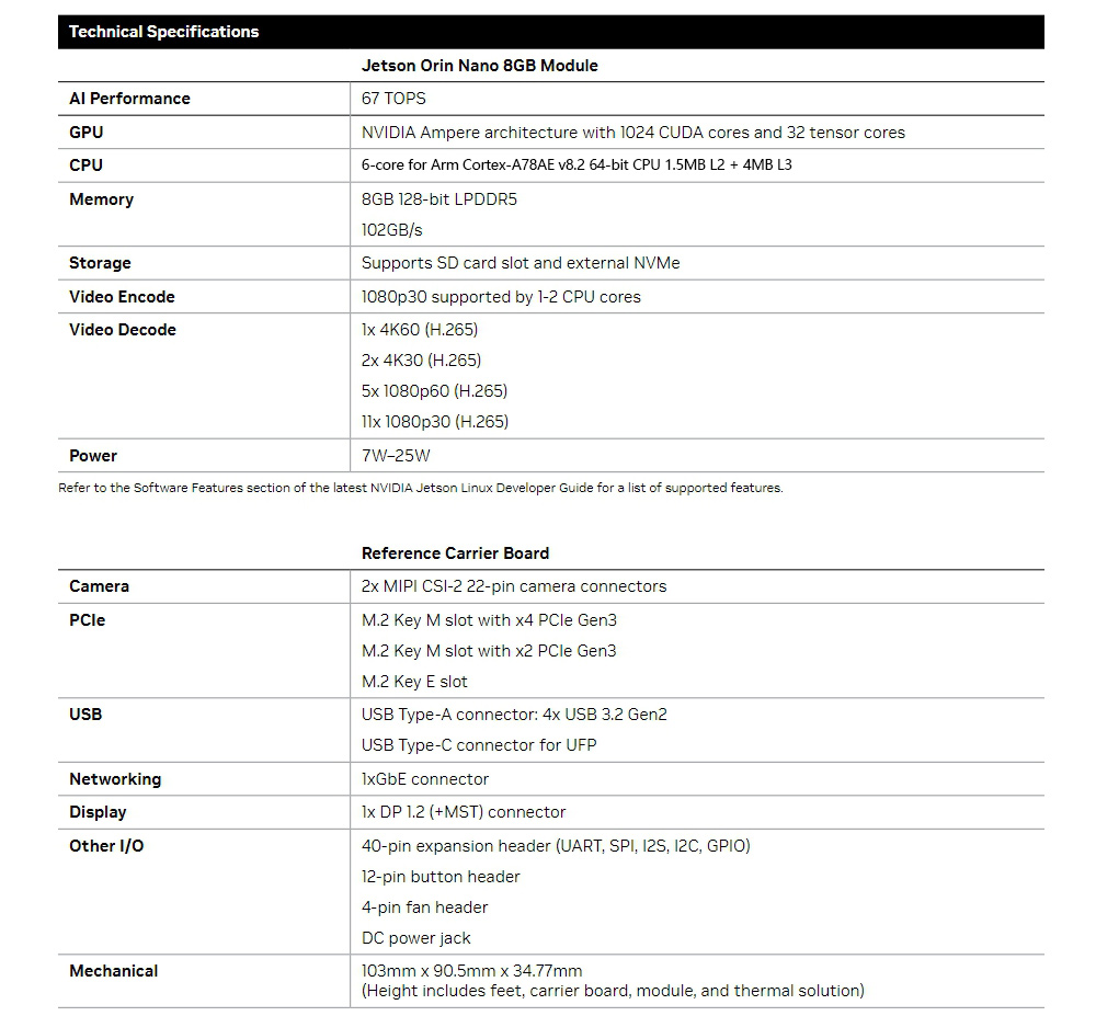 The NVIDIA Jetson Orin Nano™ Super Developer Kit is a compact, yet powerful computer that redefines generative AI for small edge devices. It delivers up to 67 TOPS of AI performance—a 1.7X improvement over its predecessor—to seamlessly run the most popular generative AI models, like vision transformers, large language models, vision-language models, and more. It provides developers, students, and makers with the most affordable and accessible platform with the support of the NVIDIA AI software and a broad AI software ecosystem. Existing Jetson Orin Nano Developer Kit users can experience this performance boost with just a software upgrade, so everyone can now unlock new possibilities with generative AI.