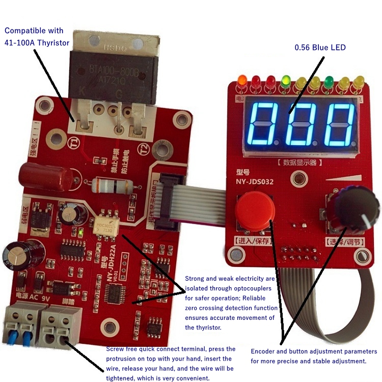 - Drive thyristor: bidirectional thyristor, 100A and below, can drive a G-level. Connection to external thyristor modules is prohibited. Items come with SCR.