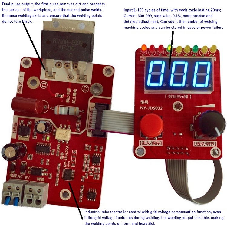 - This controller has a welding counting function, which automatically increments the welding count by 1 for each welding operation. Count range 0-999.