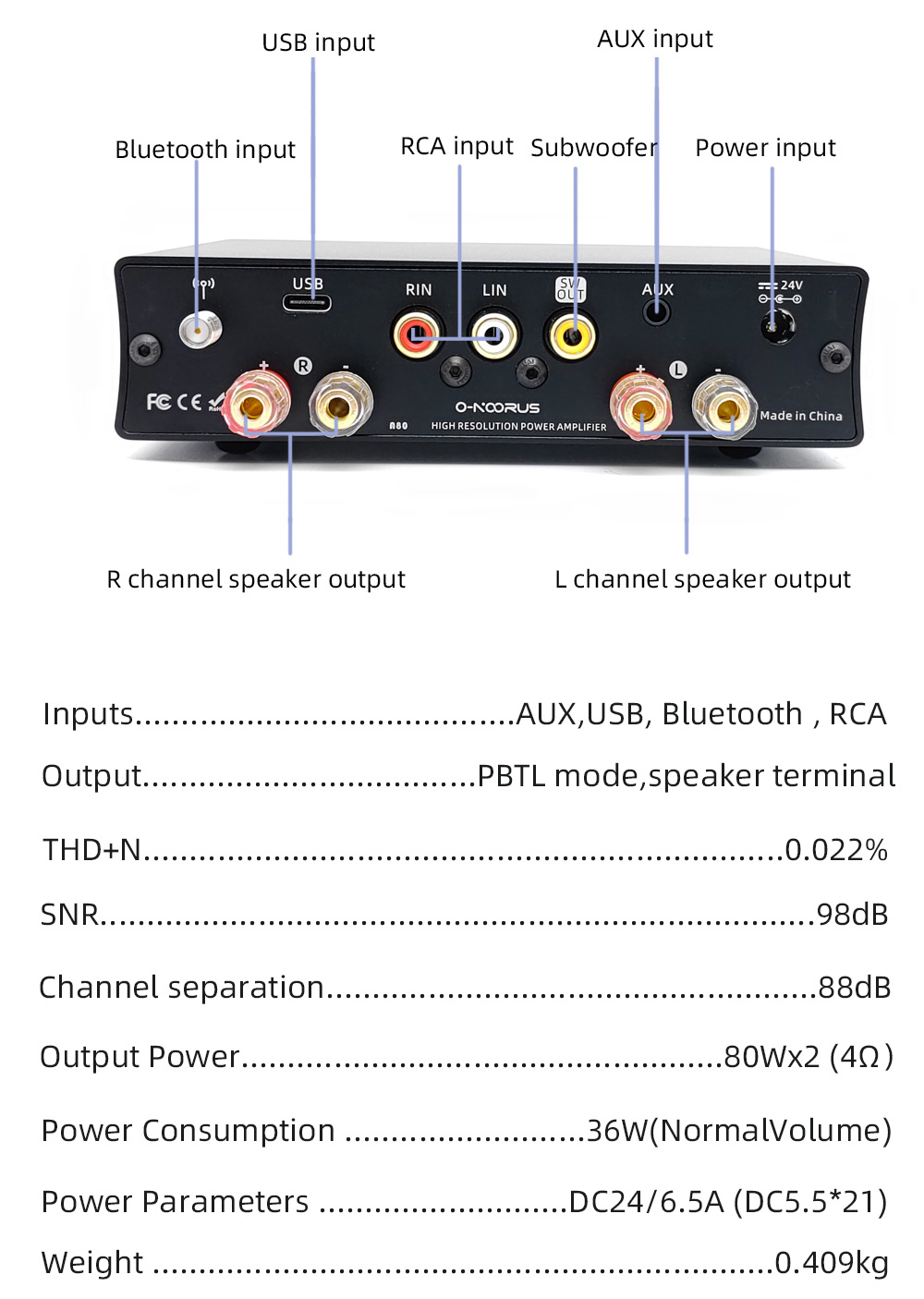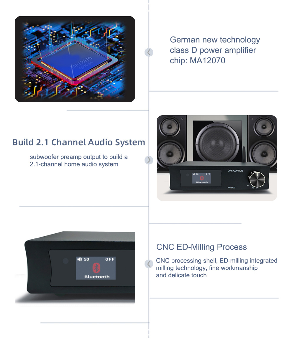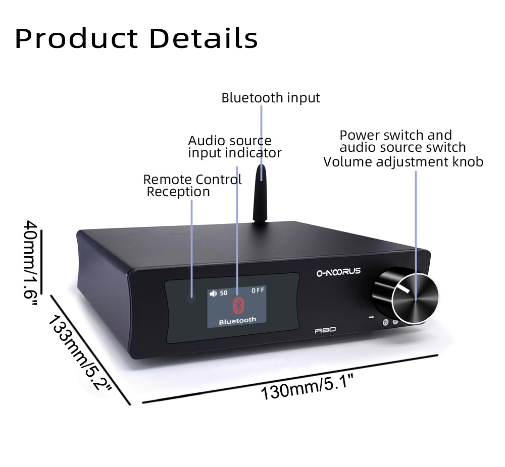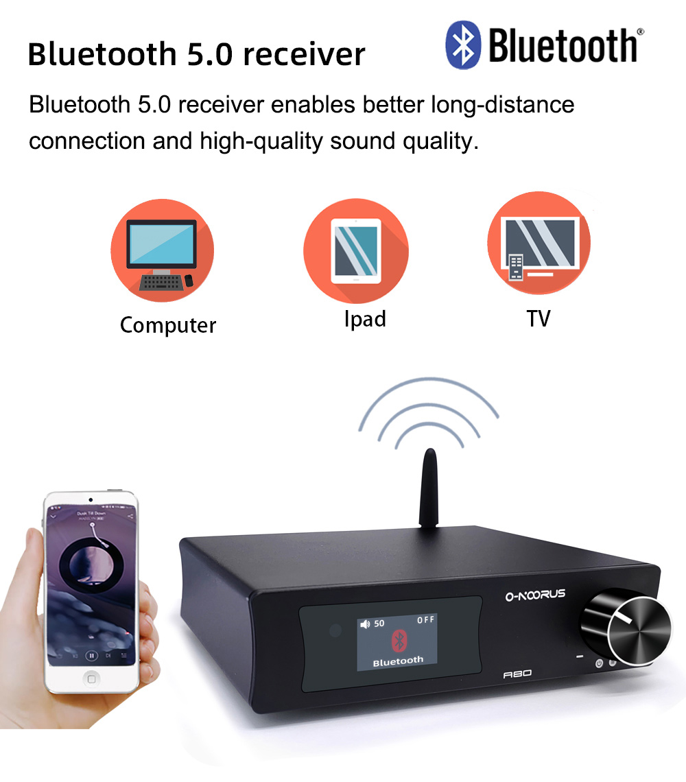O-NOORUS A80 80Wx2 MA12070 Digital Power Amplifier Hifi Power Amp Bluetooth Amplifier for Speakers