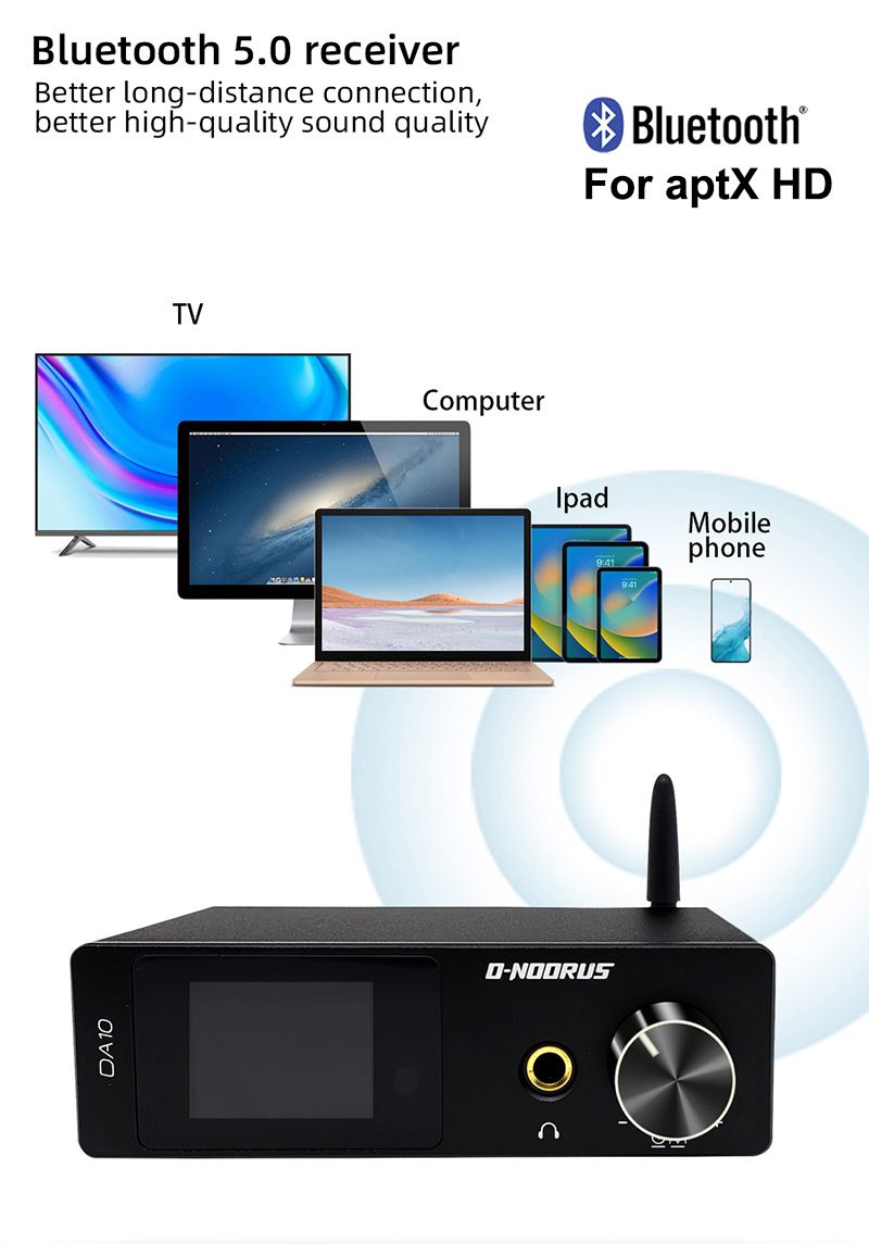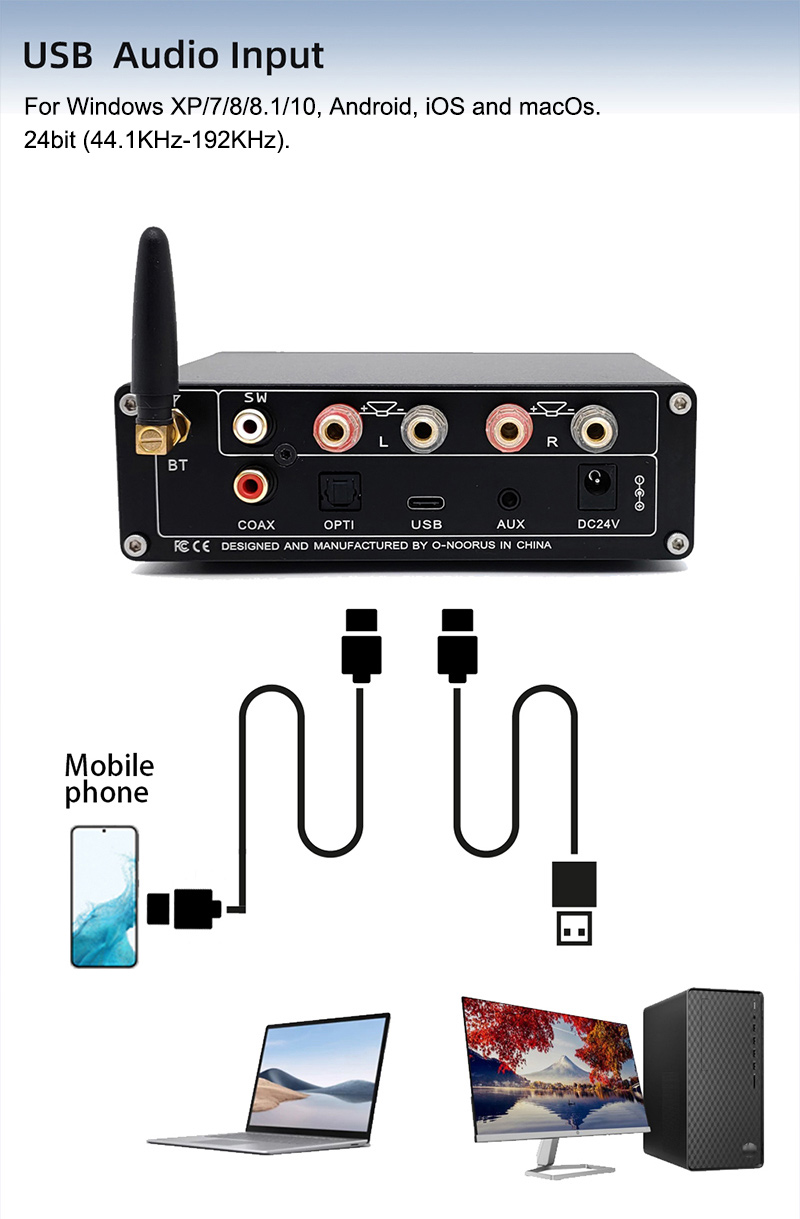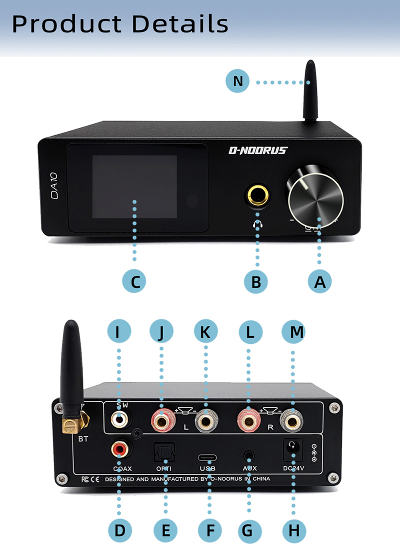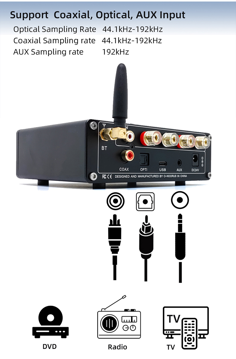 O-NOORUS DA10 80Wx2 Hifi Digital Power Amplifier Bluetooth USB DAC Audio Decoder for Home Theater