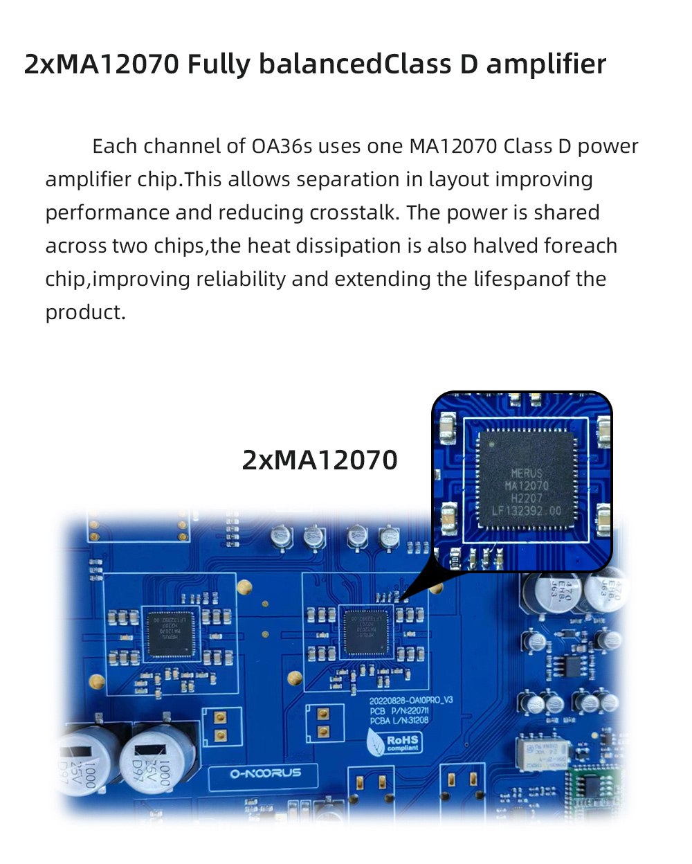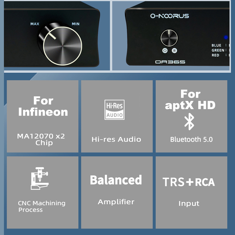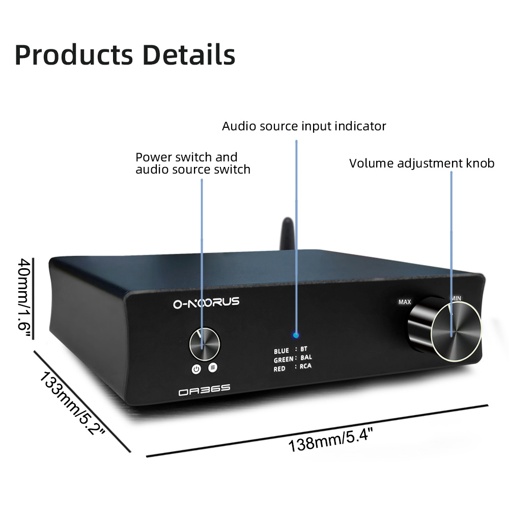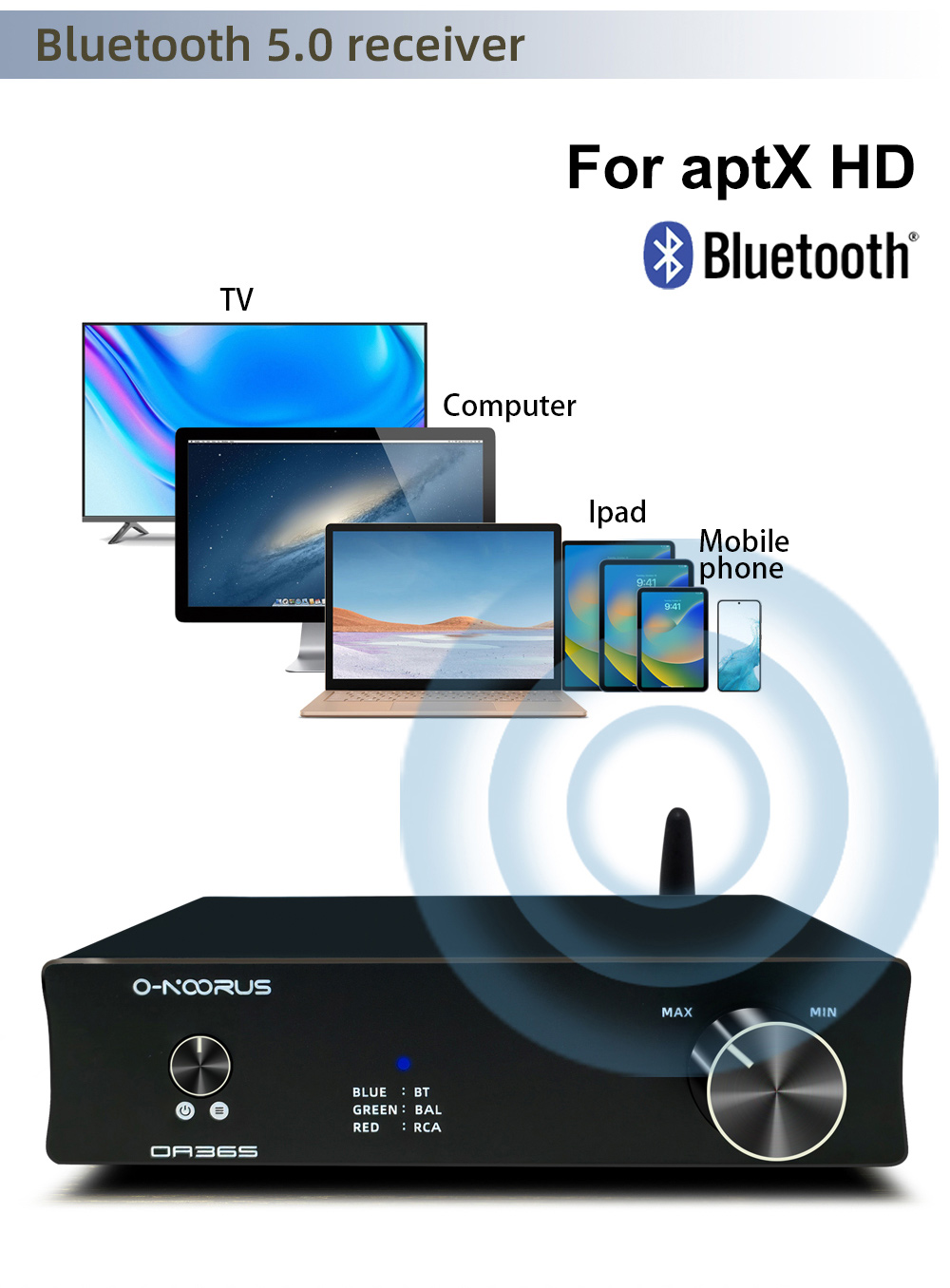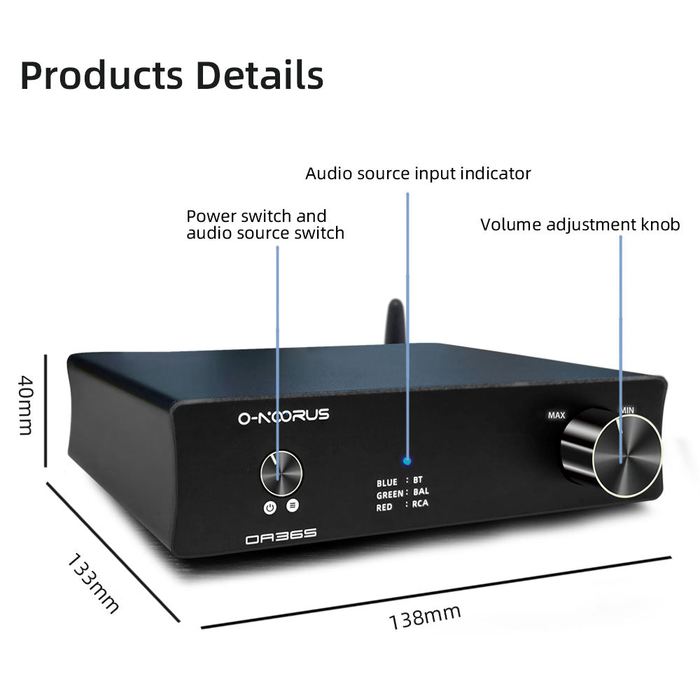 O-NOORUS OA36S 80Wx2 Digital Power Amplifier Power Amp Class D Bluetooth Amplifier Dual MA12070