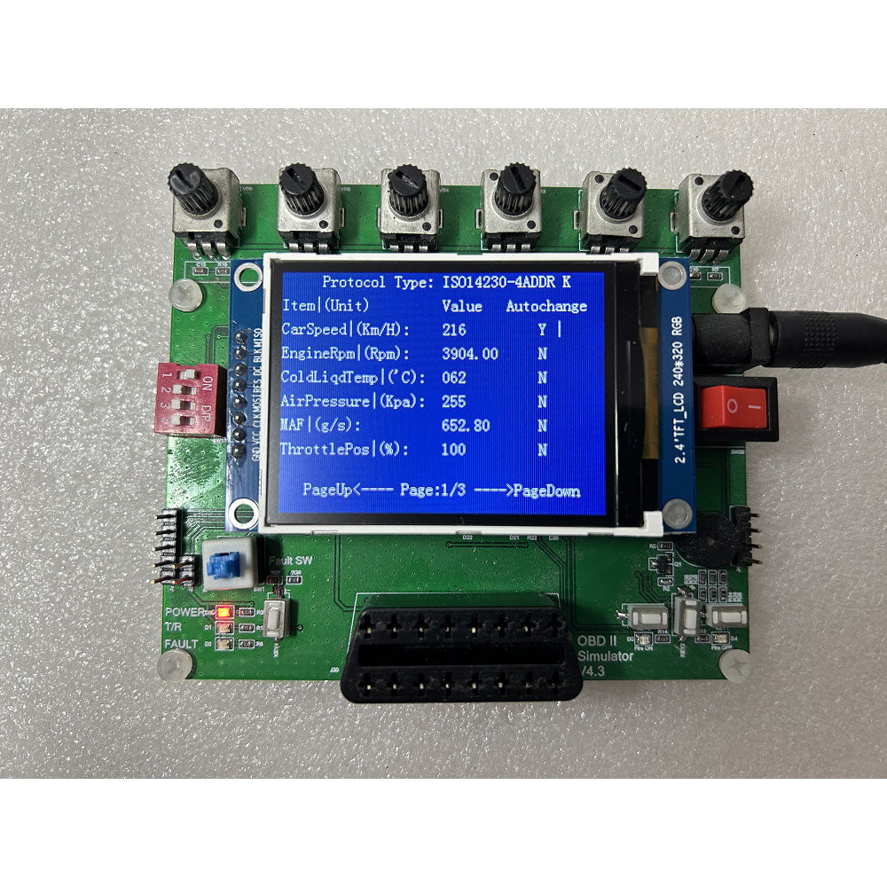 The simulator supports the simulation of multiple protocol interface standards, and can be flexibly switched between various protocols through DIP switches. It provides a real-time simulation of more than 150 data, which is close to the real car environment, allowing you to save fuel. In addition, it supports modifying and saving VINs, as well as simulating three fault codes.