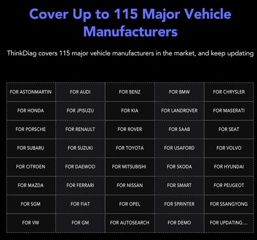 - Cover Up to 115 Major Vehicle Manufacturers: Covers 115 major vehicle manufacturers in the market, and keep updating