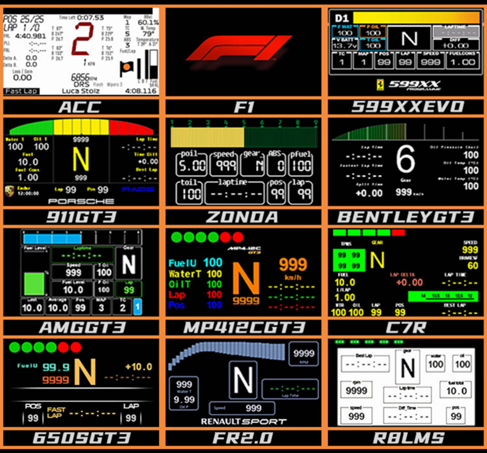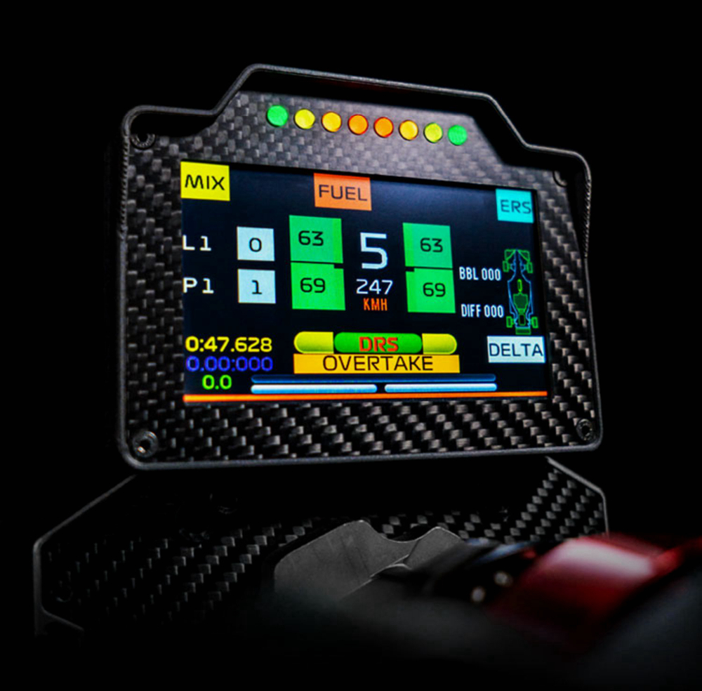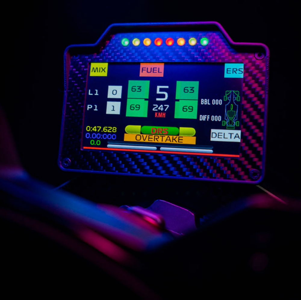 - RGB beads: Thanks to customizable RGB beads including their color and brightness, you can take advantage of these beads to achieve shift prompts, pit stop reminders, DRS indications, and even flags on the track. You can also choose from more than a dozen different styles of instrument programs according to the current game, each program contains multiple page interfaces
