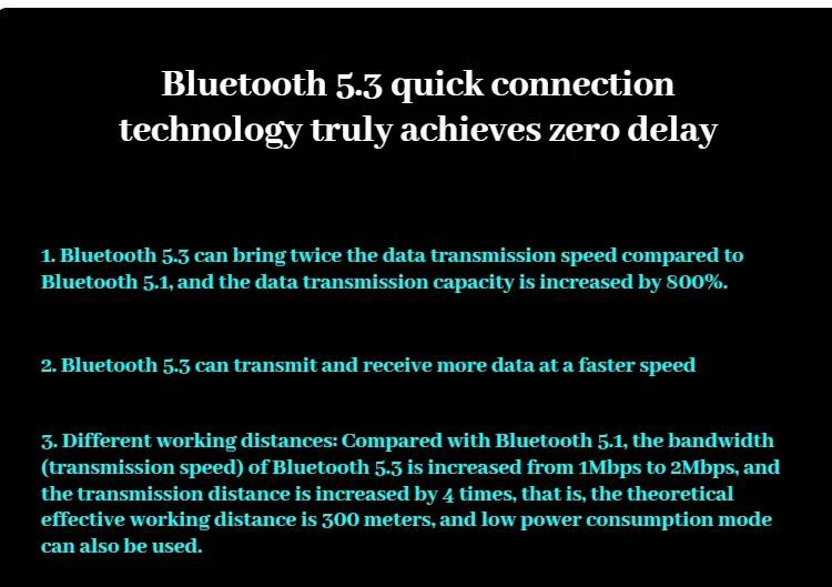 - High speed Bluetooth5.3 chip, realizing wireless connection of cellphones and other devices.