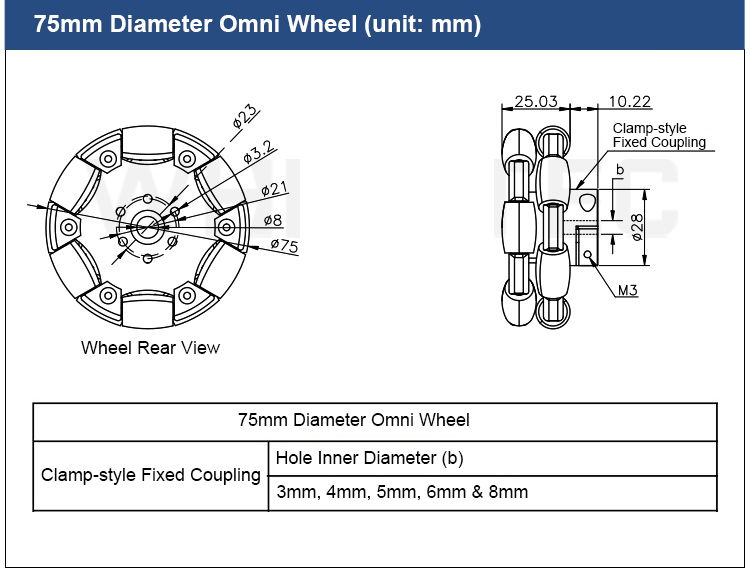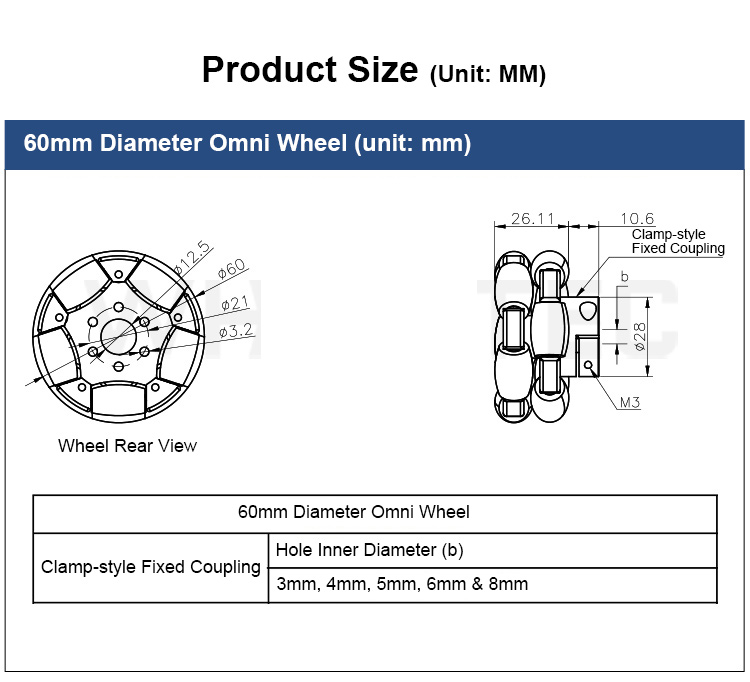 * Item Name: 127mm Omnidirectional Wheel (with Coupling)