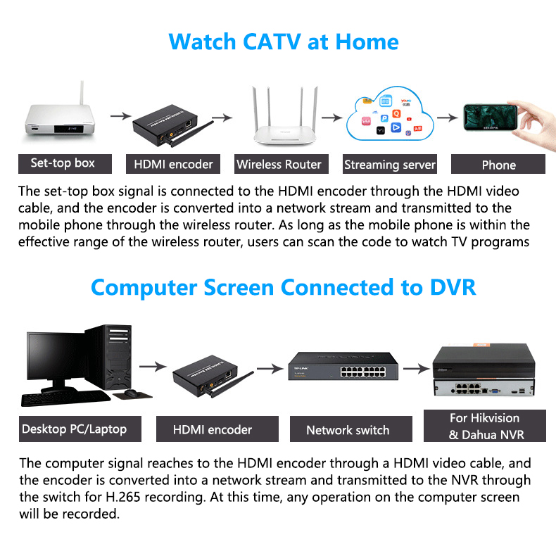 - Push stream: RTMP protocol; Pull stream: TS stream (support H.265 encoding); Support UDP multicast; Support VLC player