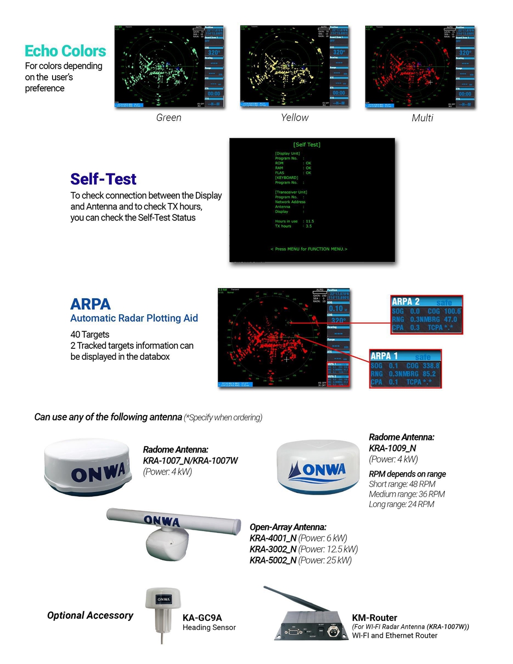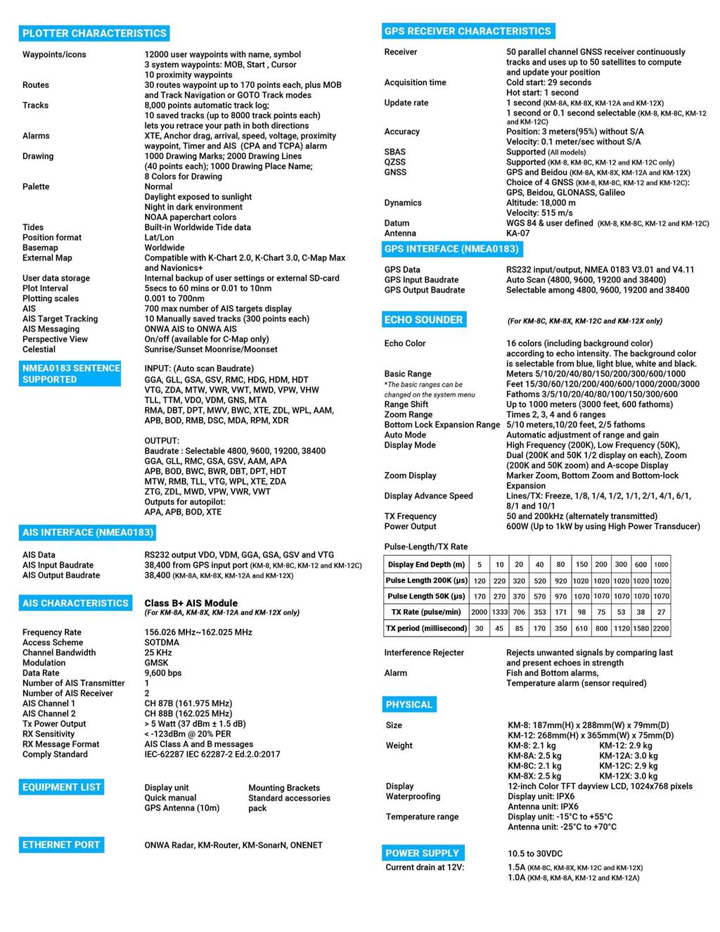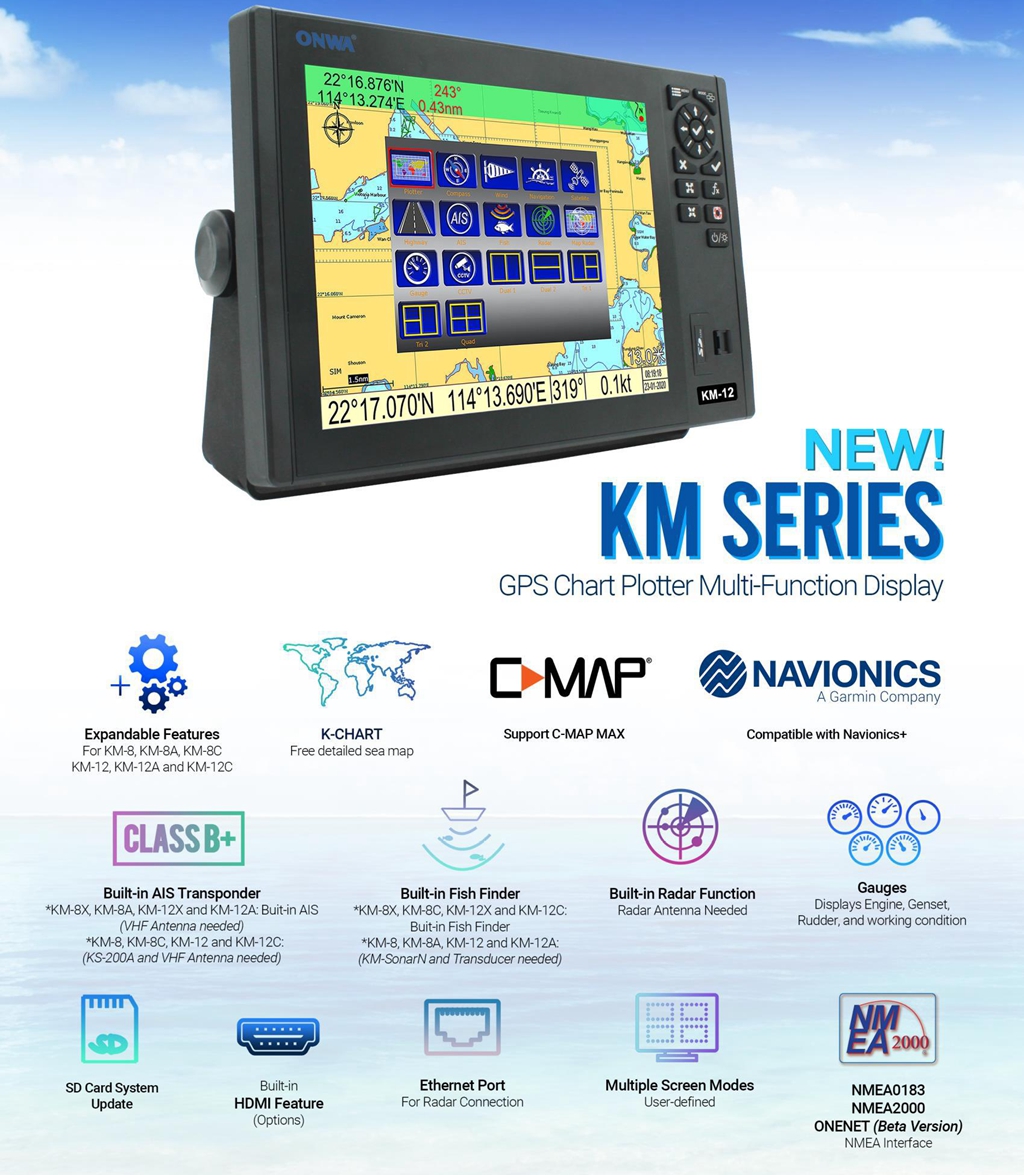 ONWA KM-12X 5-IN-1 Marine GPS Chart Plotter Echo Sounder Fish Finder Class B+ AIS Transponder Marine Radar with 12-inch LCD